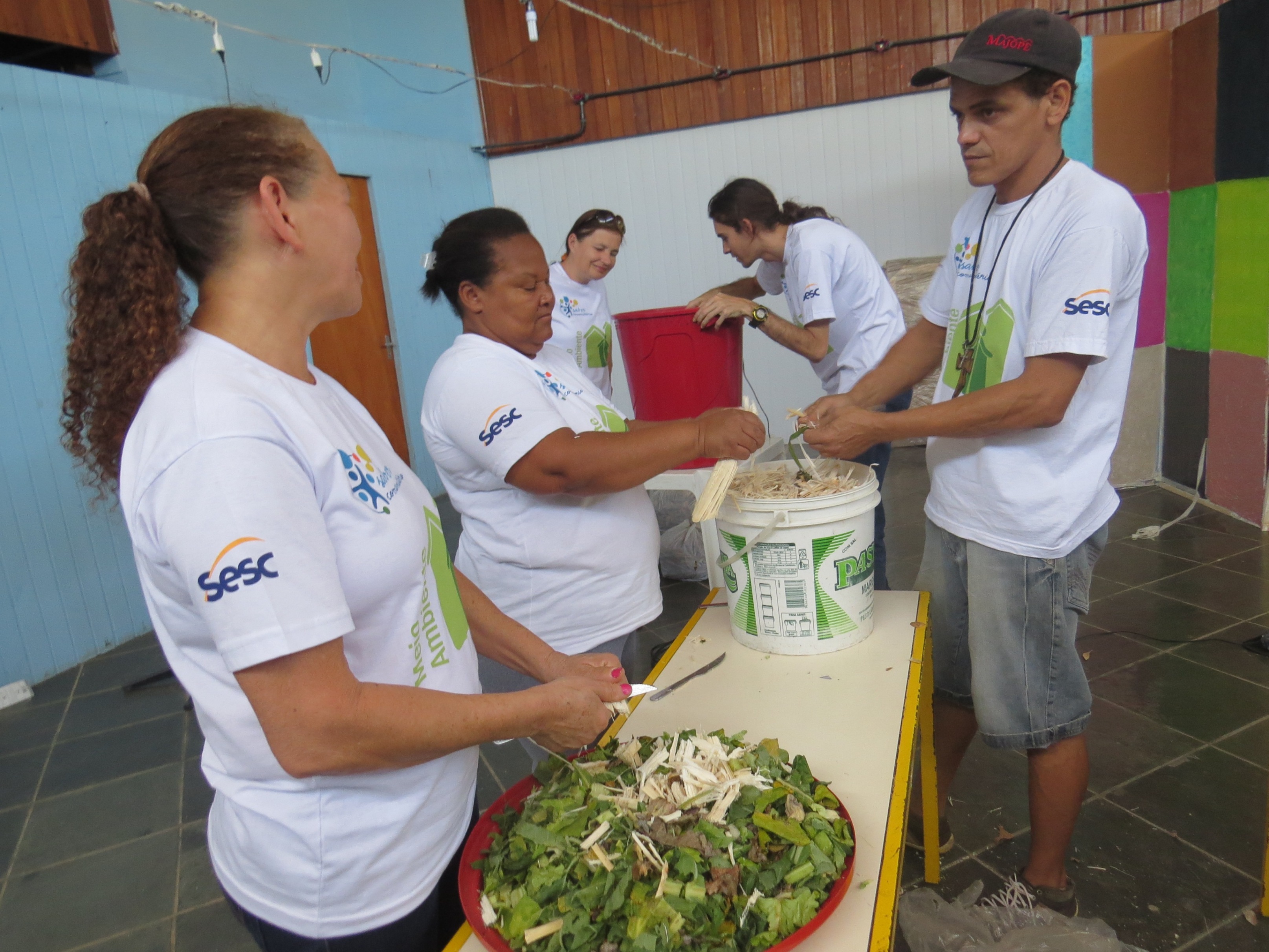 Ainda foram repassadas noções sobre a compostagem caseira propriamente dita, deixando evidente o que realmente isso significa, e foram exibidos vídeos sobre esse tema. Por fim, a turma conheceu na prática a criação de uma ‘composteira doméstica’, confeccionada com folhas secas, restos de cascas de legumes, frutas e verduras – doados por comerciantes locais – e com capacidade de armazenamento de 50 litros.