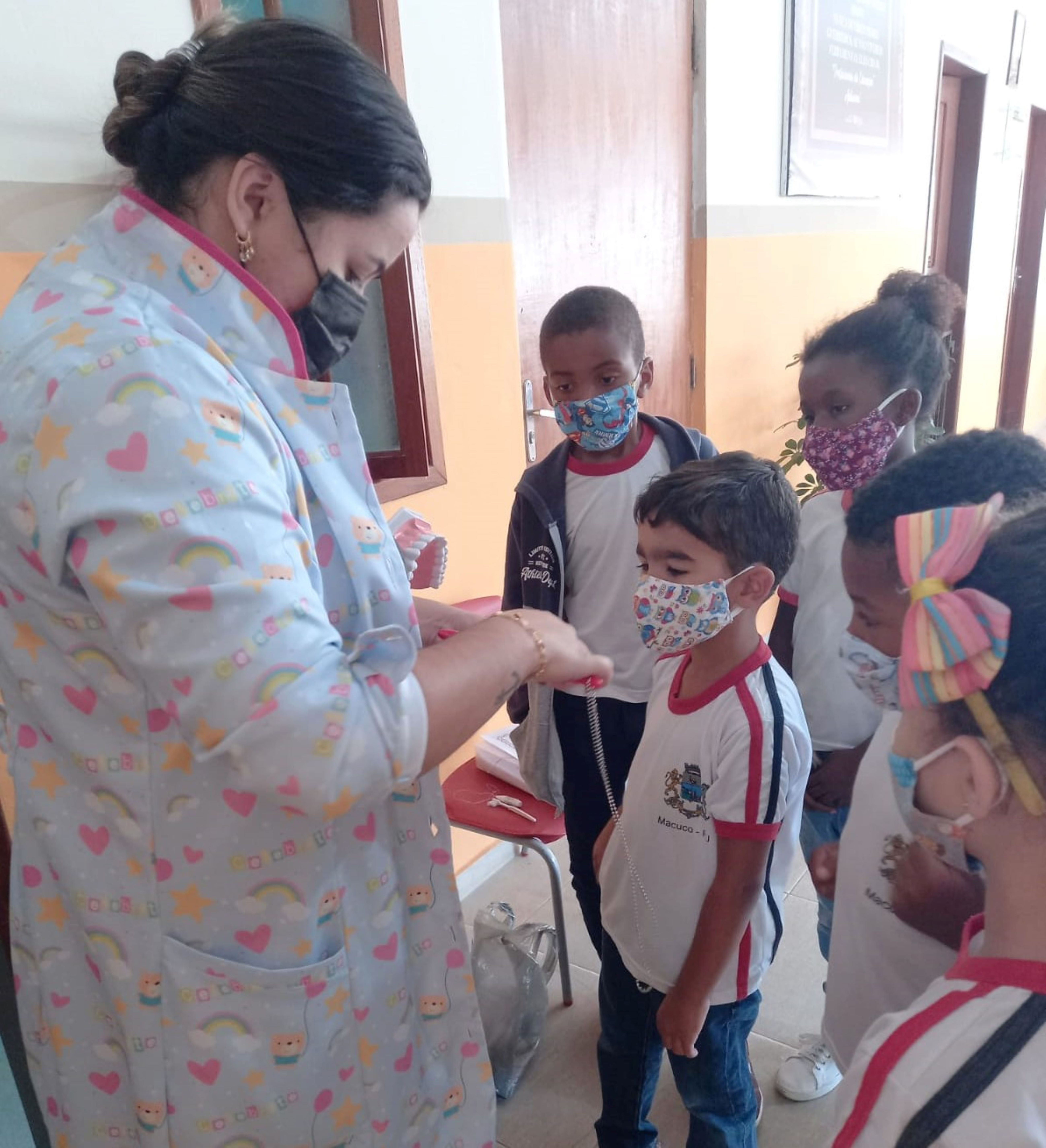 Seguem em curso os benefícios viabilizados pelo Programa ‘Saúde em Foco’ visando dar mais qualidade de vida à comunidade macuquense. Agora, teve sequência a conscientização sobre higiene bucal na Rede Municipal de Ensino, que nessa etapa repassou lições aos alunos da Escola Professora Sylvia Bath Rosas, na Volta do Umbigo.