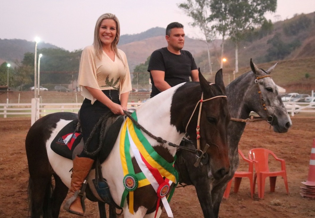 Prefeita Michelle Bianchini e o esposo João Vitor também exibiram suas habilidades equestres
