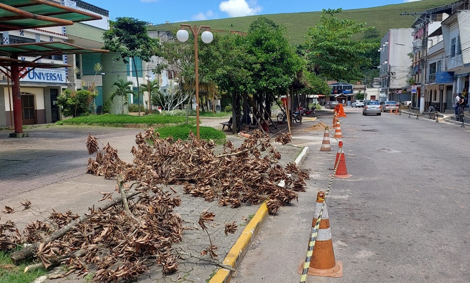 Poda da vegetação é realizada com bastante periodicidade para garantir a beleza das árvores e plantas na Praça Professor João Brasil