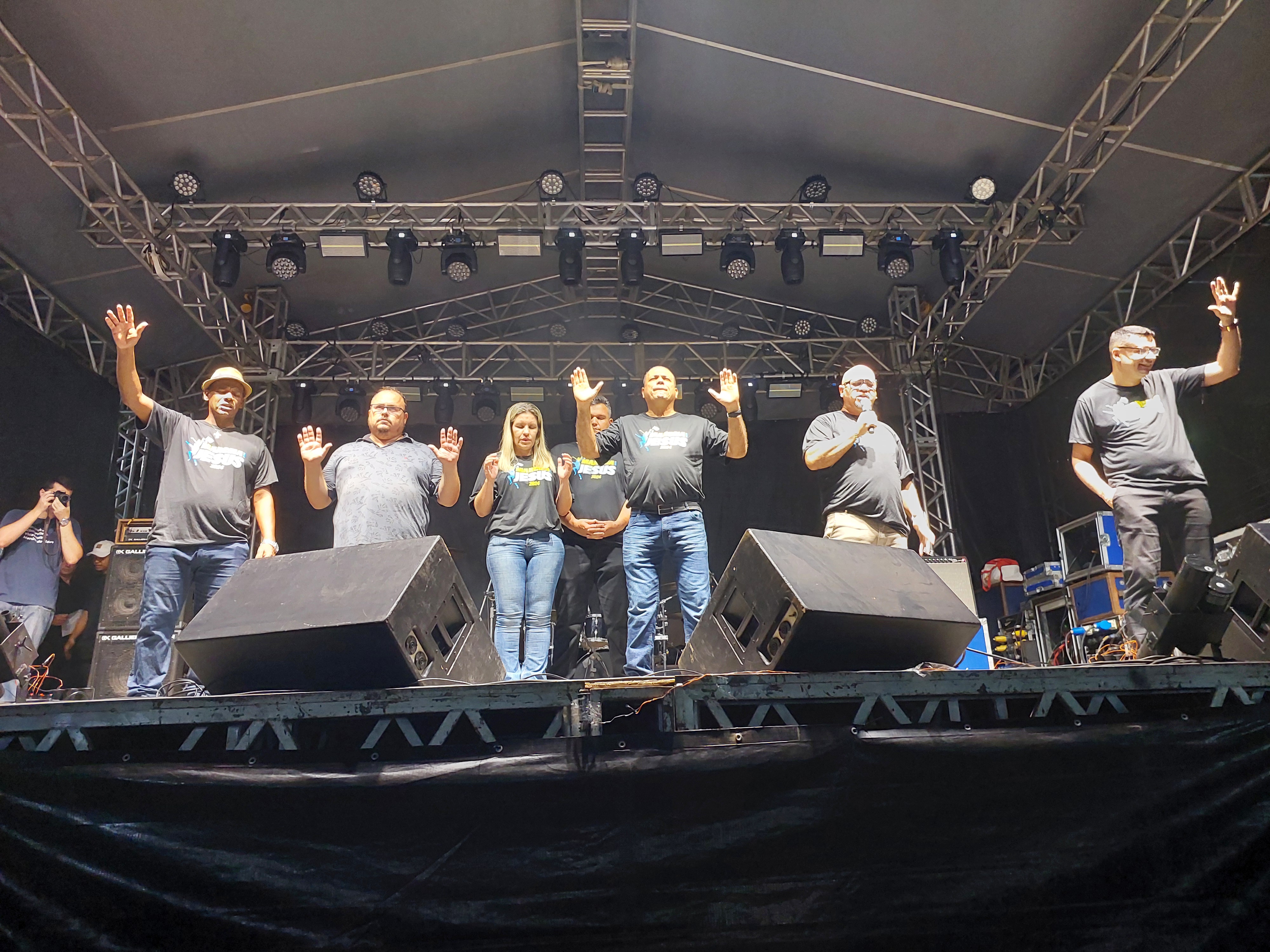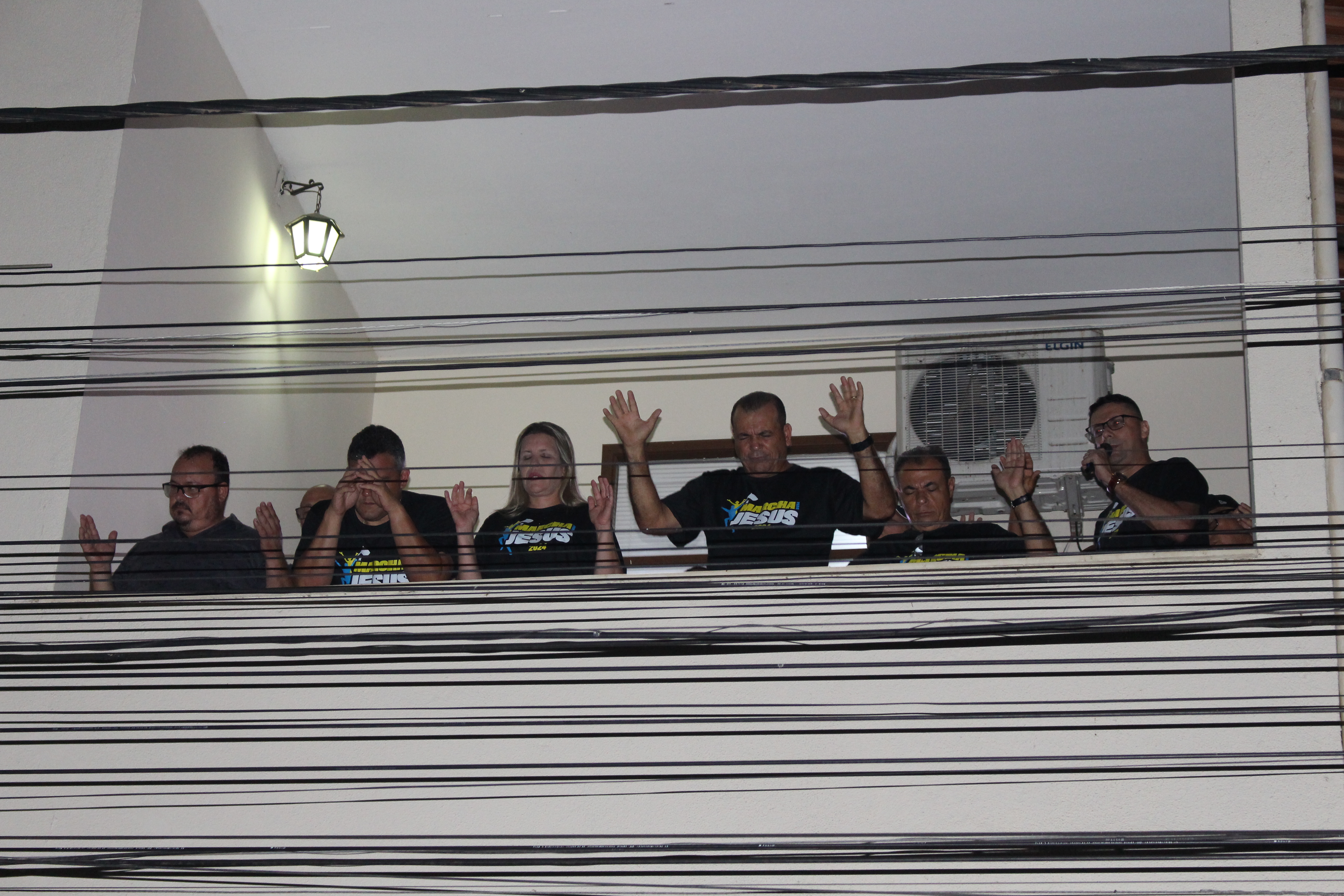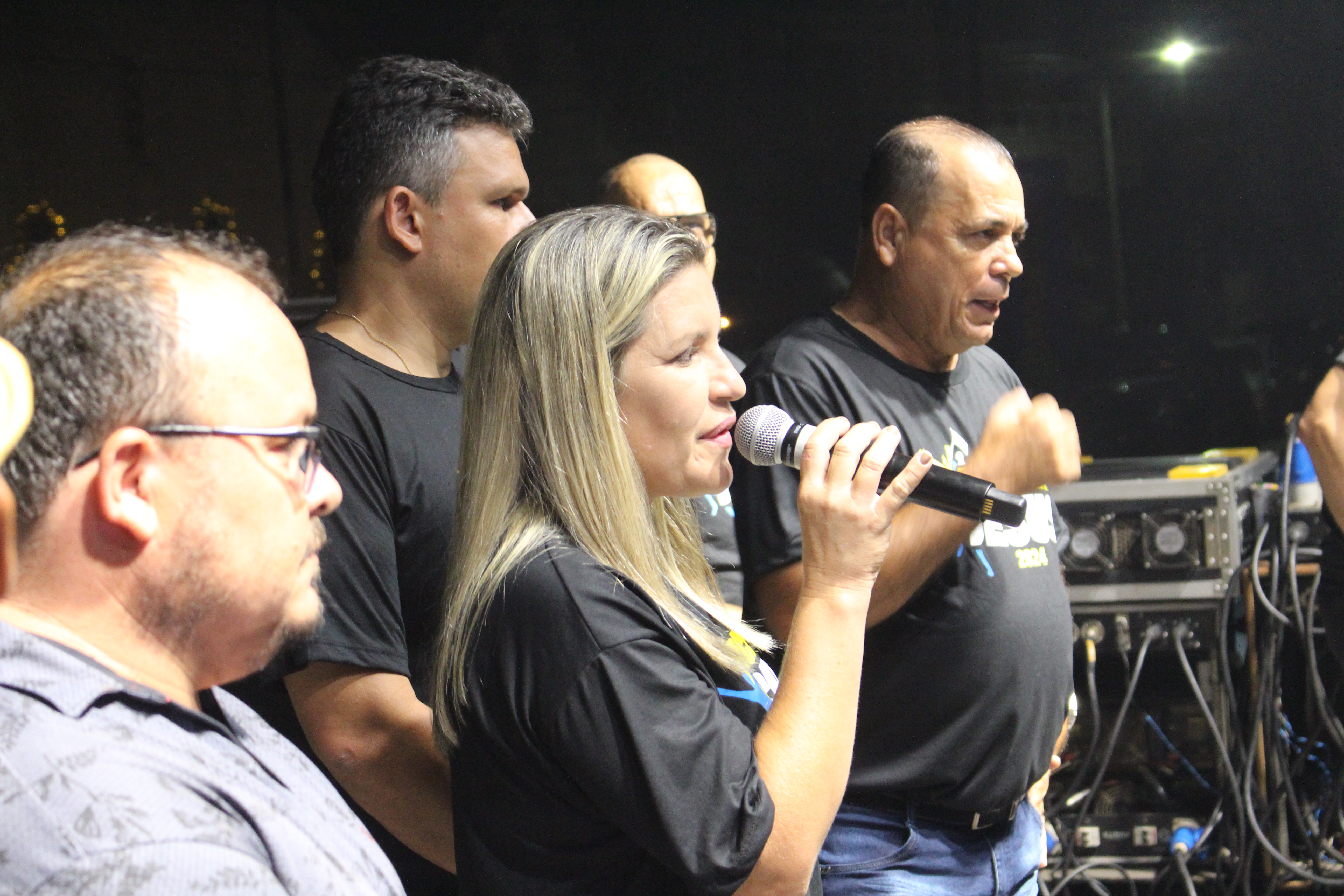 Já no palco principal, a prefeita, o vice-prefeito eleito, secretário de Governo e pastores oraram juntos por Macuco durante o início da celebração