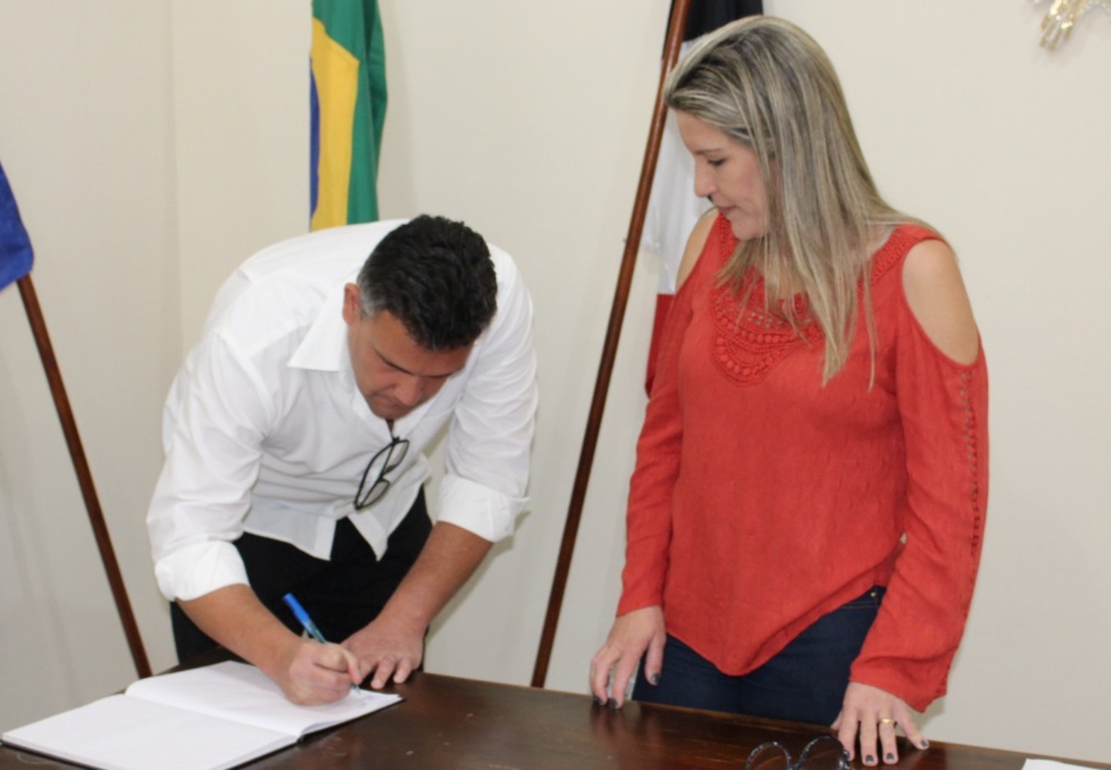 O esposo e secretário de Governo João Vitor Pontes também assina o Termo de Posse como testemunha