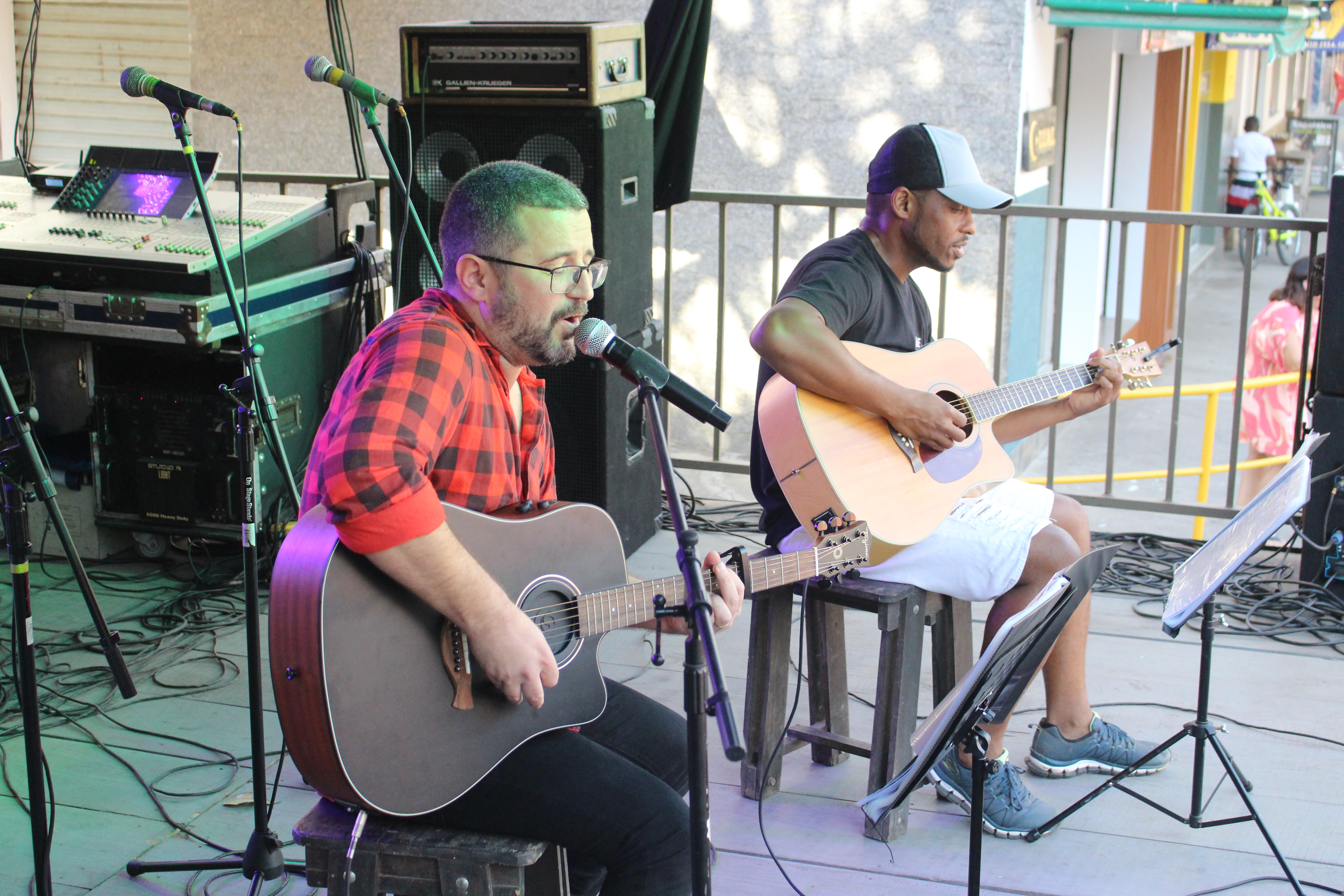 Voz e violão de Paulo Henrique Fellows abriu a programação musical no sábado à tarde