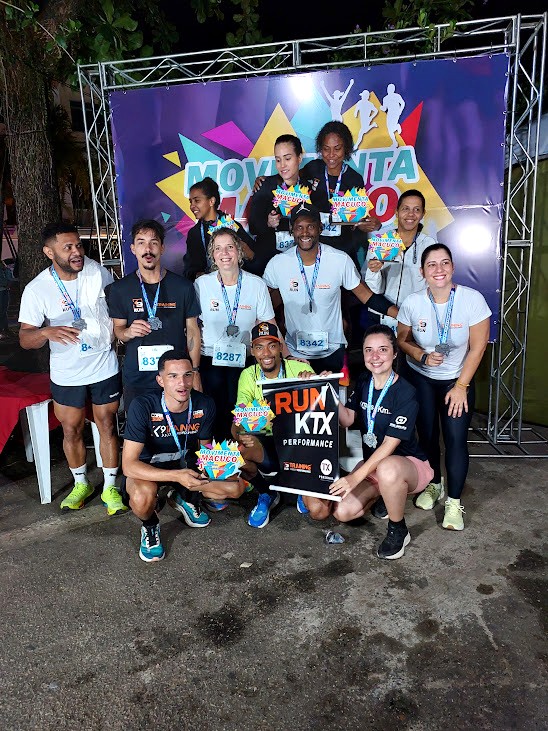 Participantes reunidos ao término da prova em Macuco comemorando a superação das metas individuais e coletivas