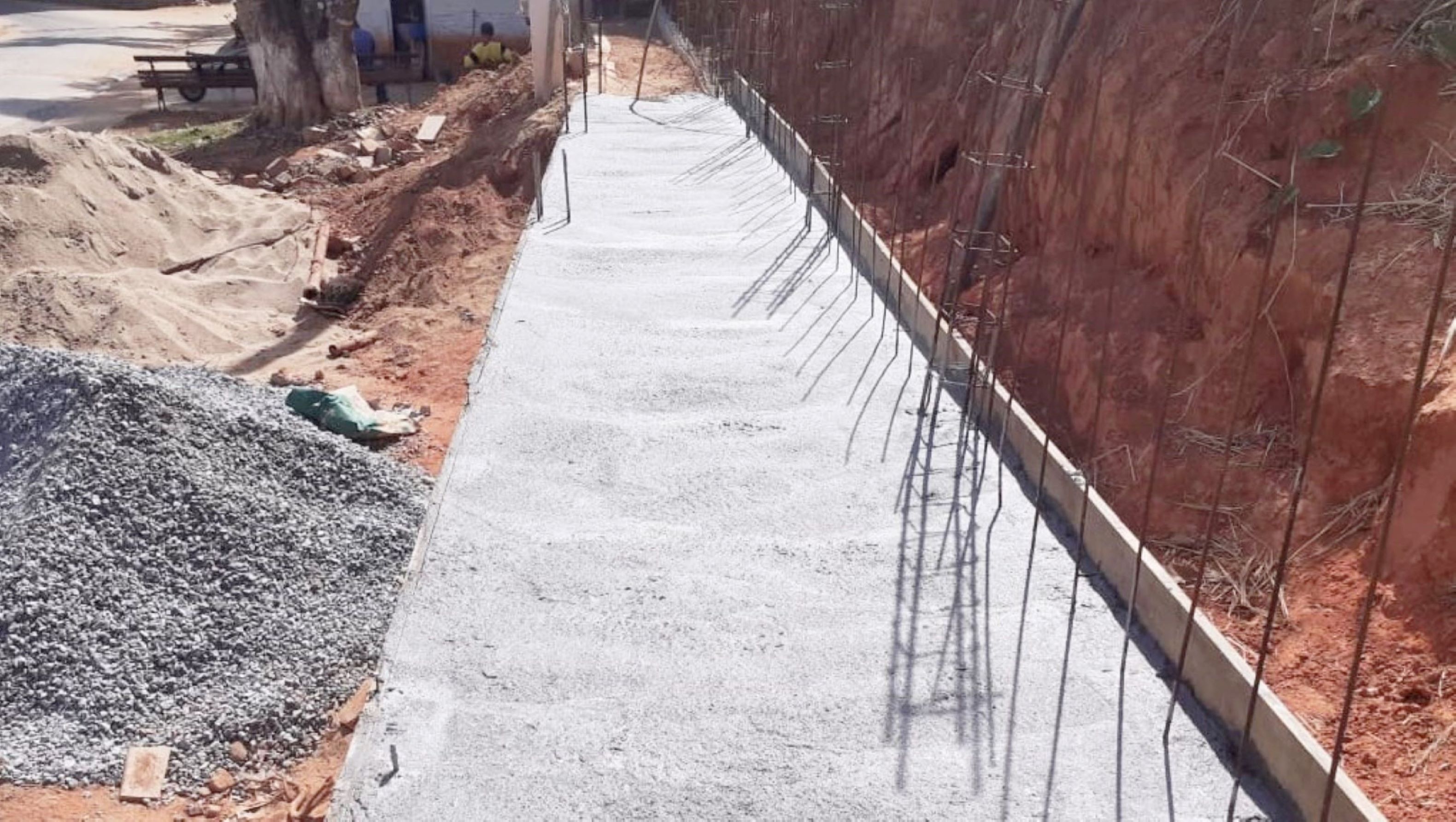 Muro de contenção e calçamento no bairro Santos Reis