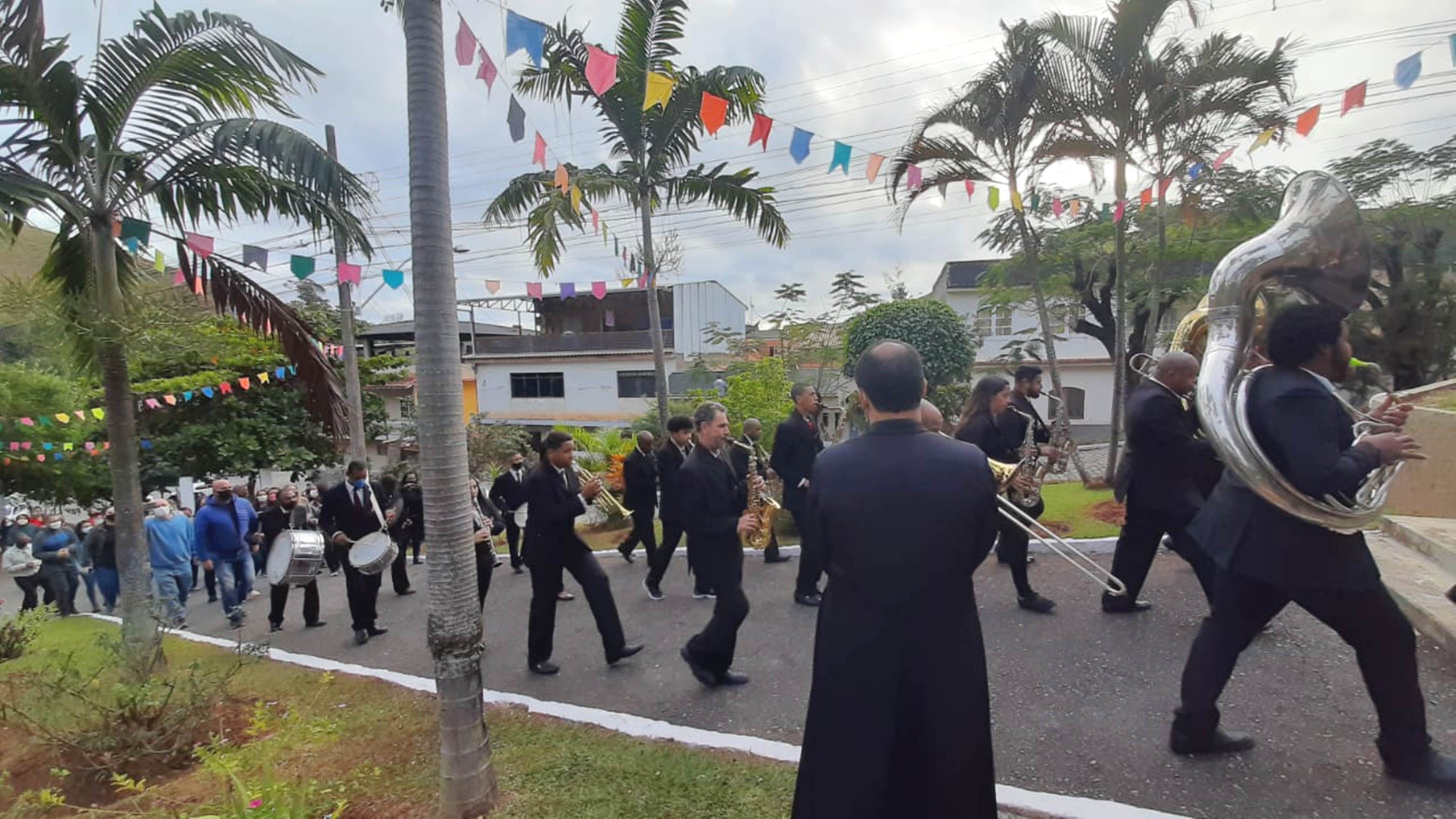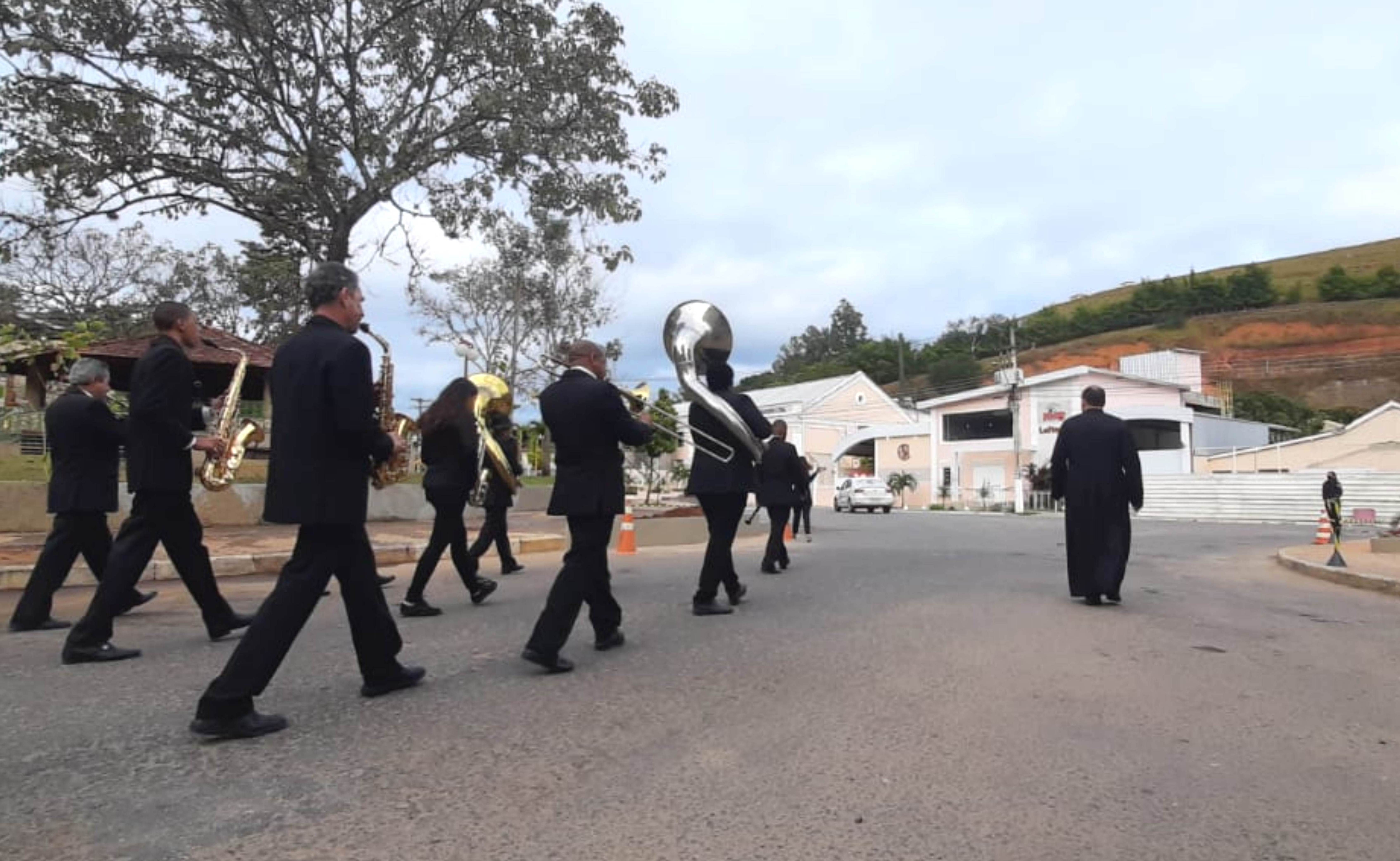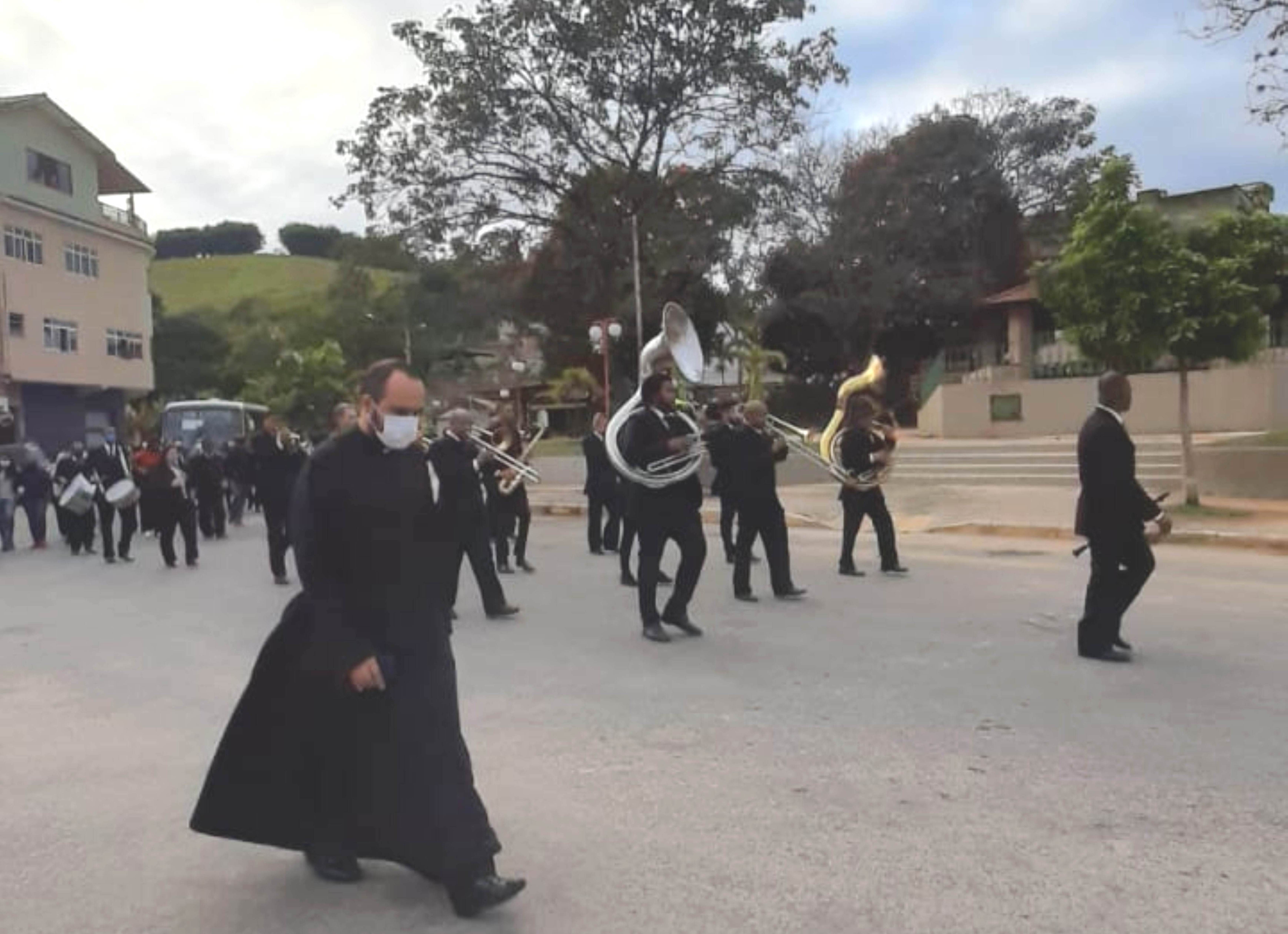 Padre Fernando Pacheco fez questão de caminhar com os músicos da banda