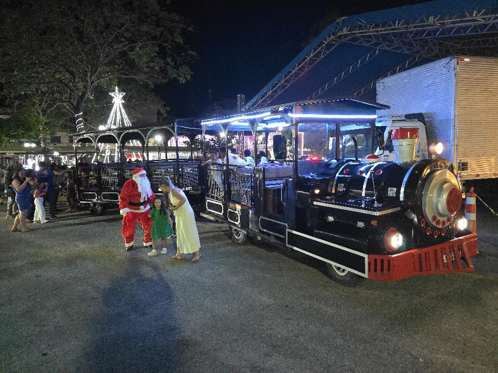 No domingo, 21 de dezembro, essa proposta ganhou forma e emoção novamente com a chegada triunfal do Papai Noel ao centro da cidade, dessa feita por iniciativa da Secretaria de Desenvolvimento Social e Direitos Humanos. A ação – que integrou as atividades do Serviço de Convivência e Fortalecimento de Vínculos (SCFV) – levou o Bom Velhinho a bordo do tradicional Trenzinho da Alegria, ‘nos trilhos da imaginação’, até sua aconchegante casinha, onde foi recebido por sorrisos, olhares encantados e muita expectativa da criançada, celebrando o momento de afeto, magia e conexão das gerações.