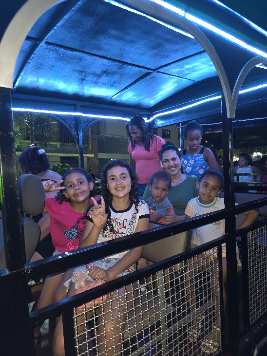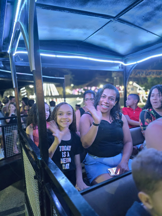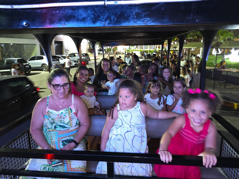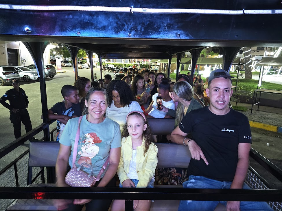 Mais uma imagem confirmando que a alegria foi a tônica das famílias no passeio do trenzinho no domingo que antecede ao Natal