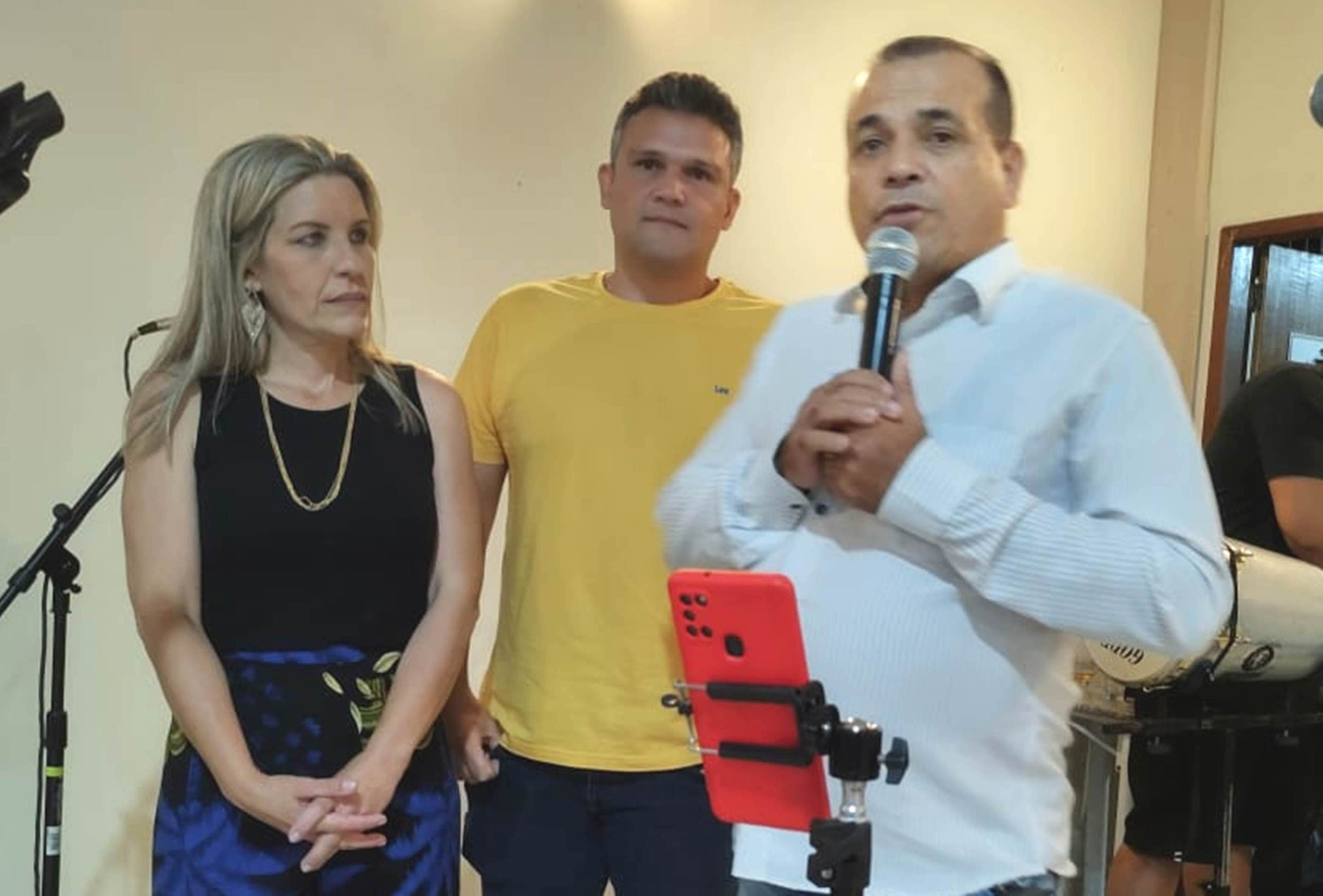 Sempre atentos às questões culturais, prefeita e secretário de Governo fotografaram diante do ótimo grupo que animou a festa