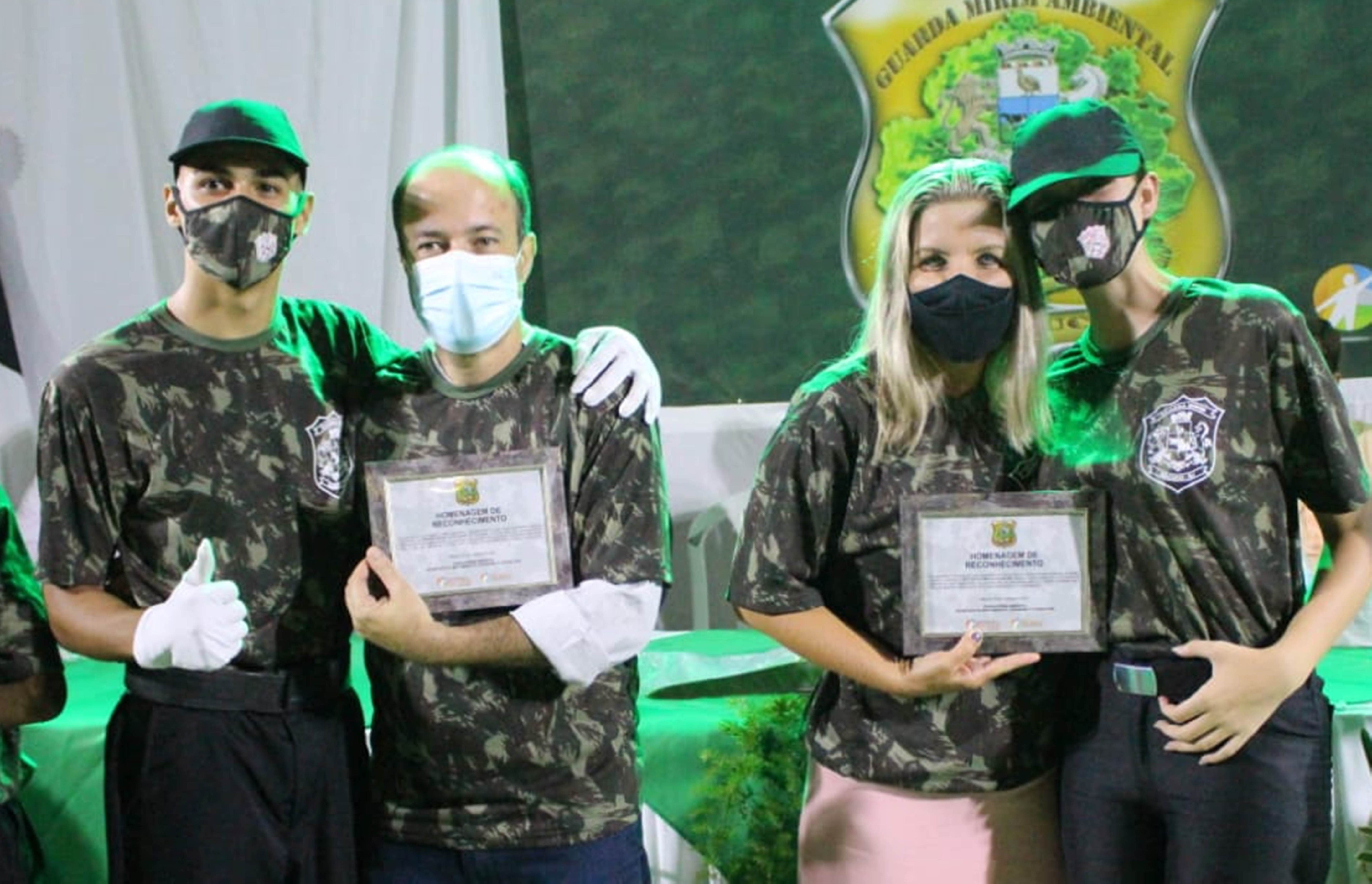 Durante a solenidade desta terça-feira no Macuco Rural Park, três homenagens aumentaram o clima emotivo. O prefeito Bruno Boaretto, sua vice Michelle Bianchini e o coordenador da Guarda Mirim Raul Carapeba receberam uma placa de gratidão pelo apoio e incondicional ao projeto. Também estiveram presentes como convidados o comandante da Guarda Ambiental de Carmo, Antonio Marcos Moura, e o vereador carmense Silvinho Onofre.