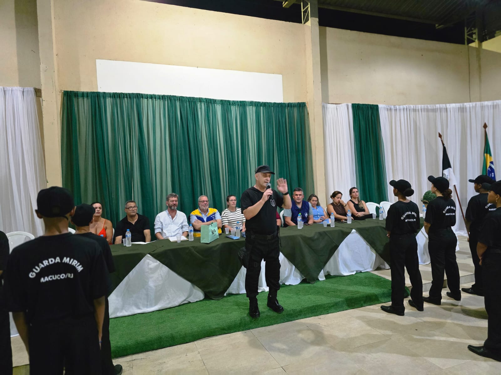 Monitor das turmas da Guarda Mirim Municipal de Macuco, o instrutor Raul Carapeba também discursou e foi homenageado. Outro momento marcante da noite foi a entrega de um quadro em homenagem ao secretário de Segurança Pública, Capitão Jocélio Bezerra, que deixa o cargo neste mês e foi um dos grandes entusiastas do projeto. O gesto simbolizou a gratidão pelo trabalho desenvolvido e pelo legado deixado na formação de cidadãos conscientes, comprometidos e preparados para fazer a diferença no futuro de Macuco, além de exaltar o ótimo trabalho que ele deixou para o município.
