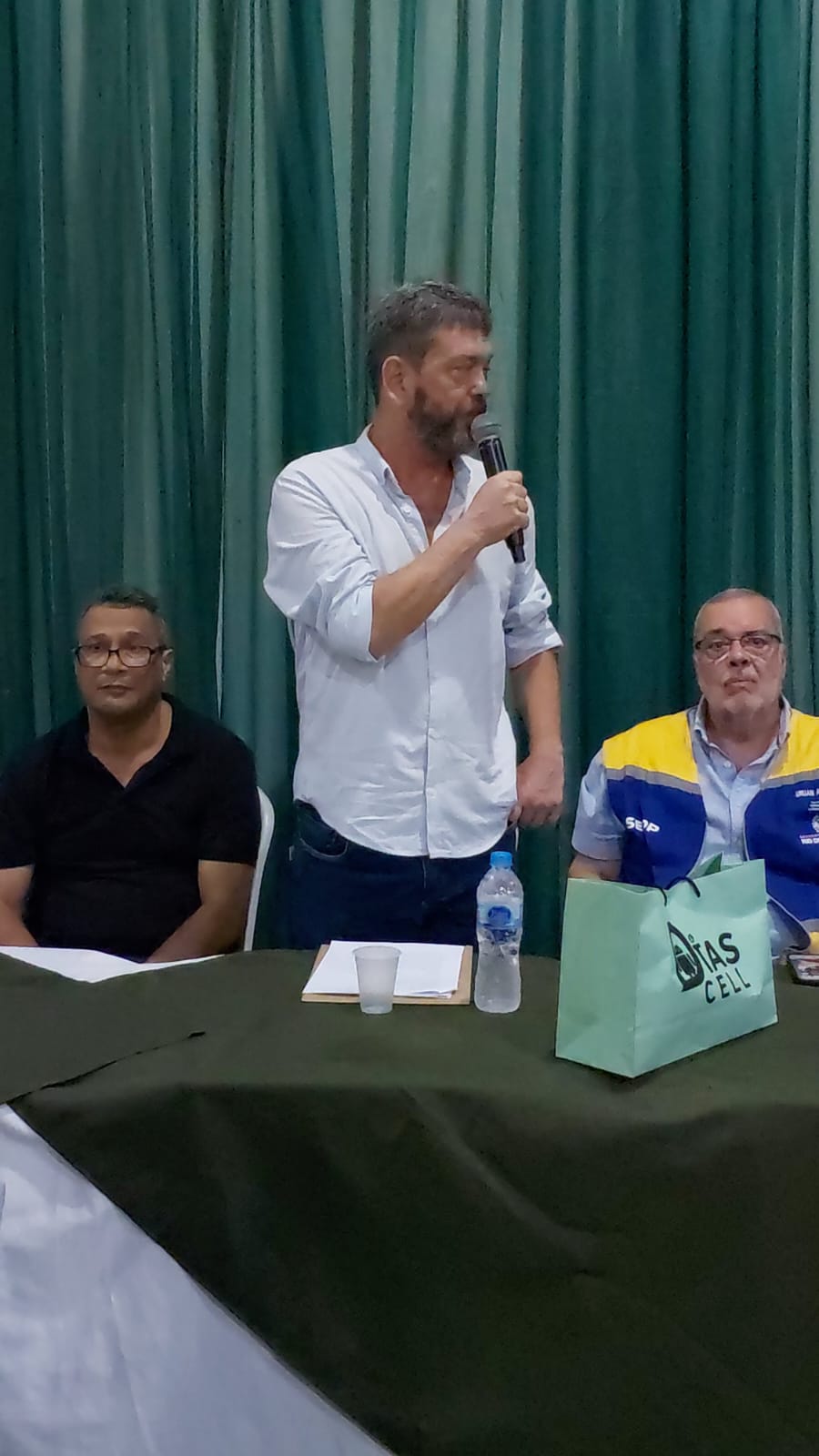 Instrutor e monitores acompanhando a solenidade e a fala das autoridades