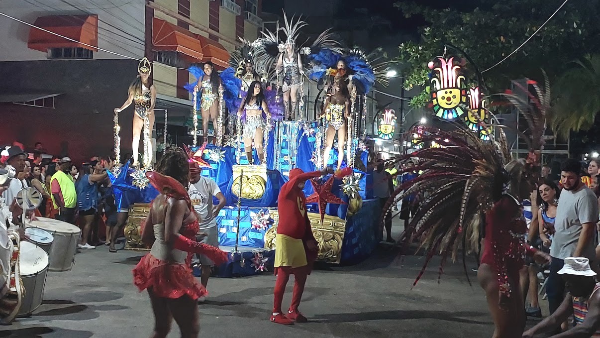 Imagem frontal de um dos carros alegóricos da agremiação que encantou a avenida na segunda-feira de carnaval