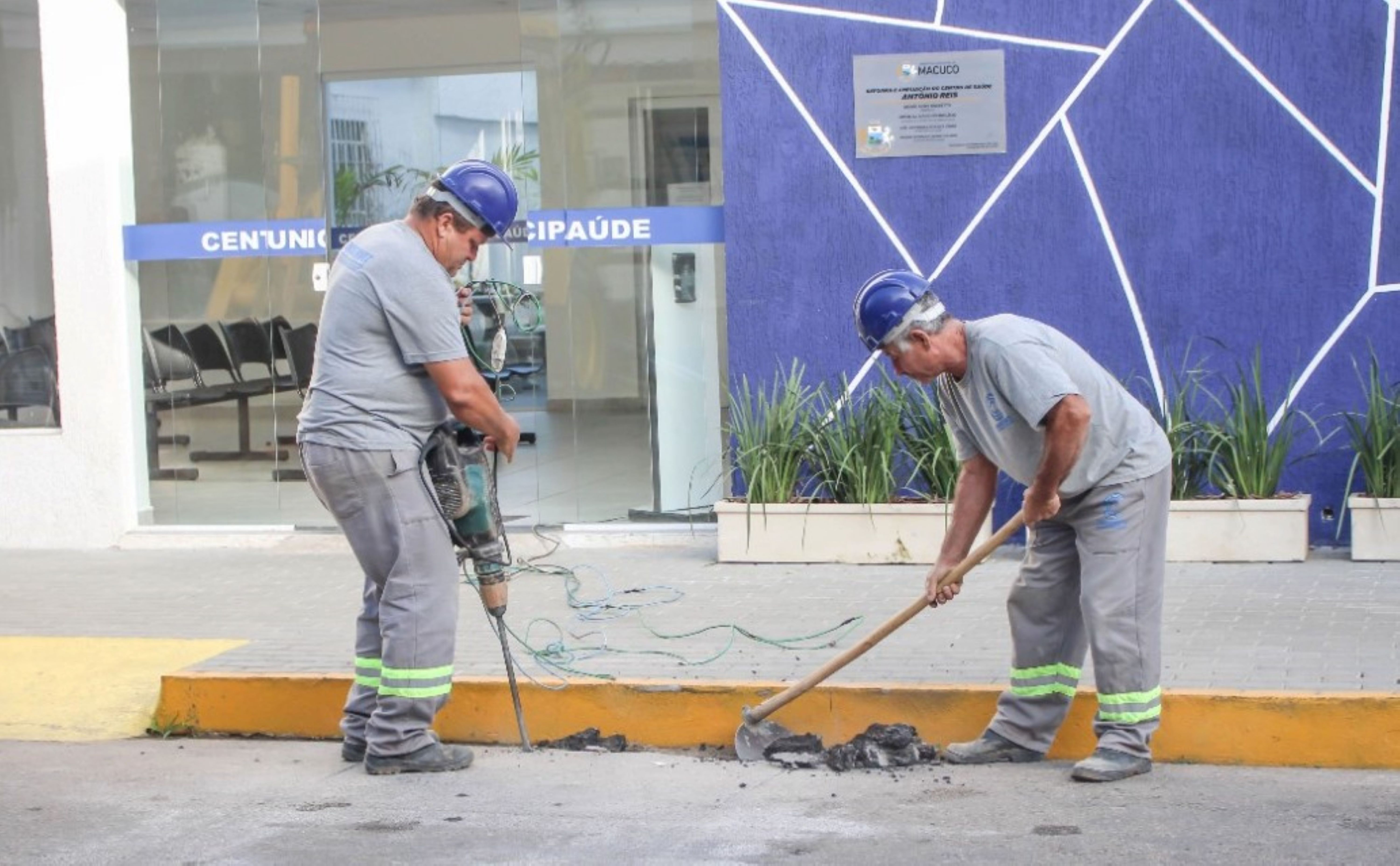 Preparativos iniciais para a implantação das faixas elevadas aconteceu nas proximidades do Centro Municipal de Saúde de Macuco