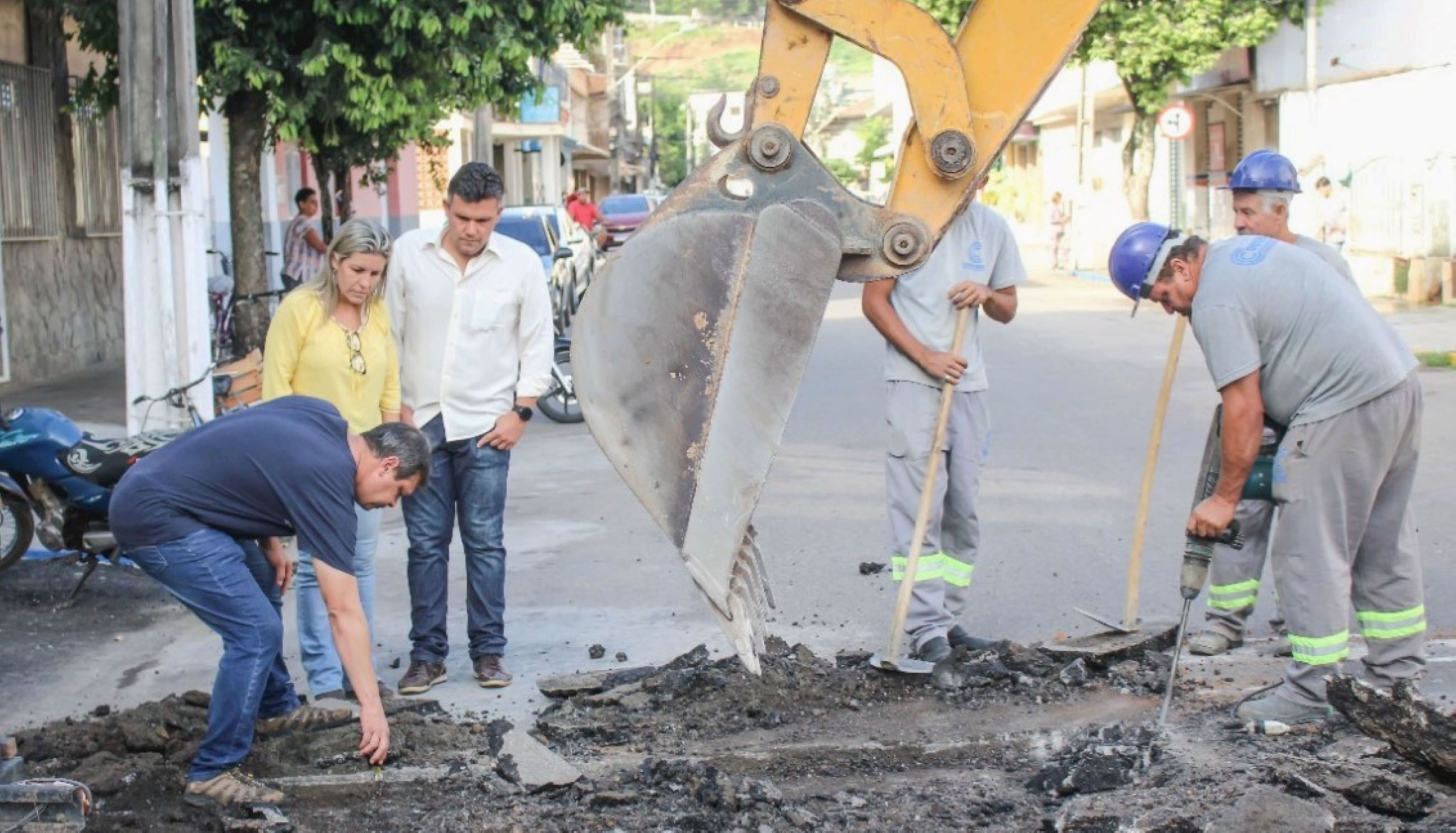 Prefeita e secretário de Governo observam cada detalhe dos serviços e ouvem informações técnicas com o coordenador de Projetos