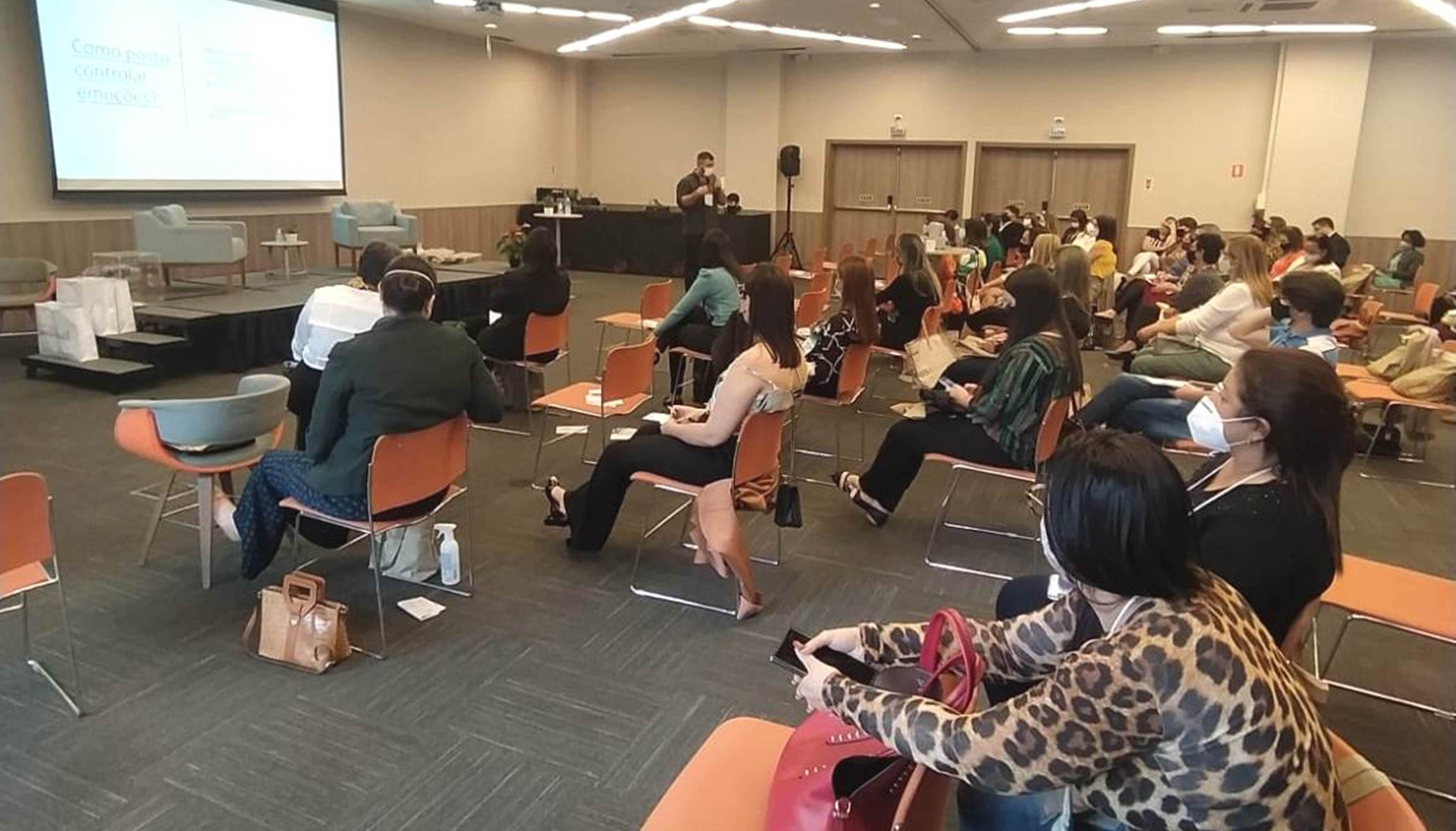 Luciana Boaretto junto do palestrante e neuropediatra Dr. Gustavo Estanislau