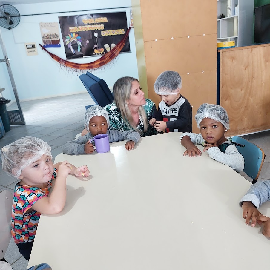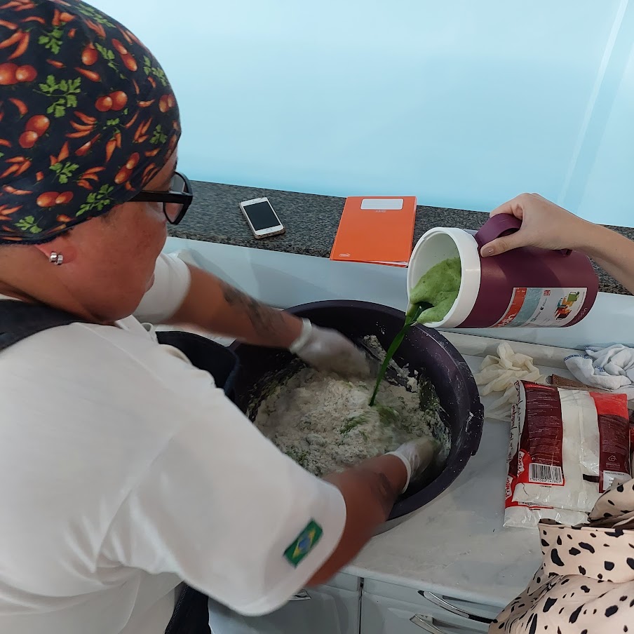 Hora e vez de fazer a mistura mágica que se transformaria nas delícias para a merenda dos pequeninos estudantes