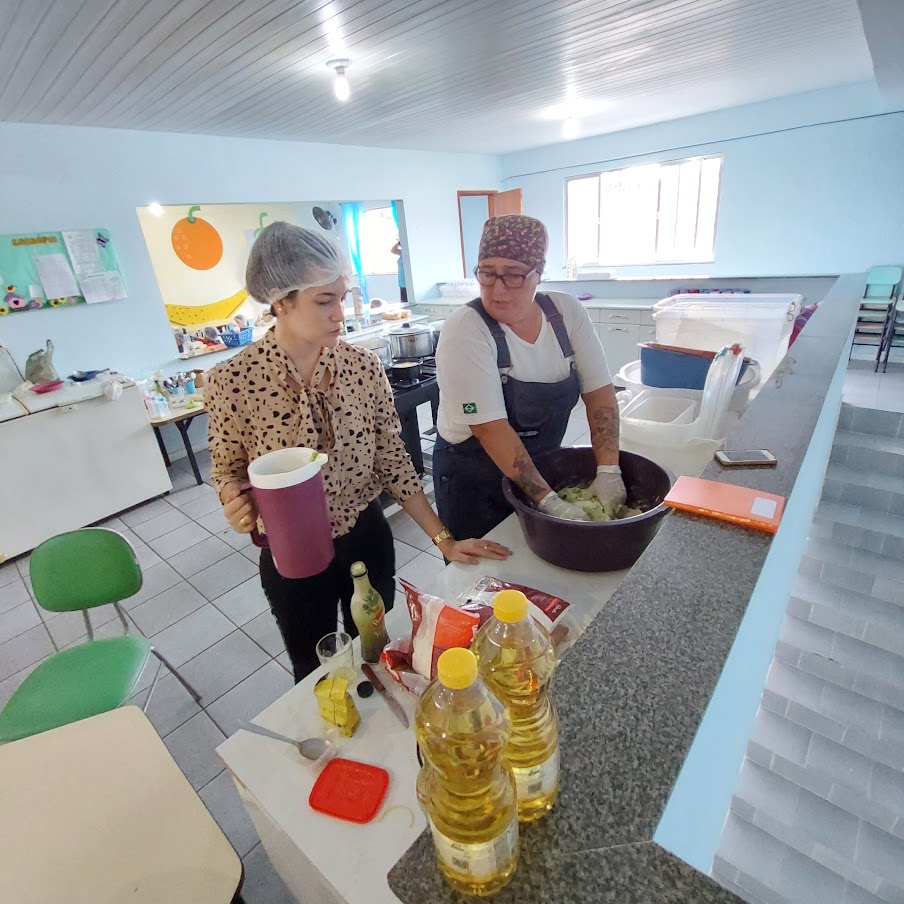 Um bate-papo informativo entre as duas profissionais durante o processo de elaboração das receitas na creche