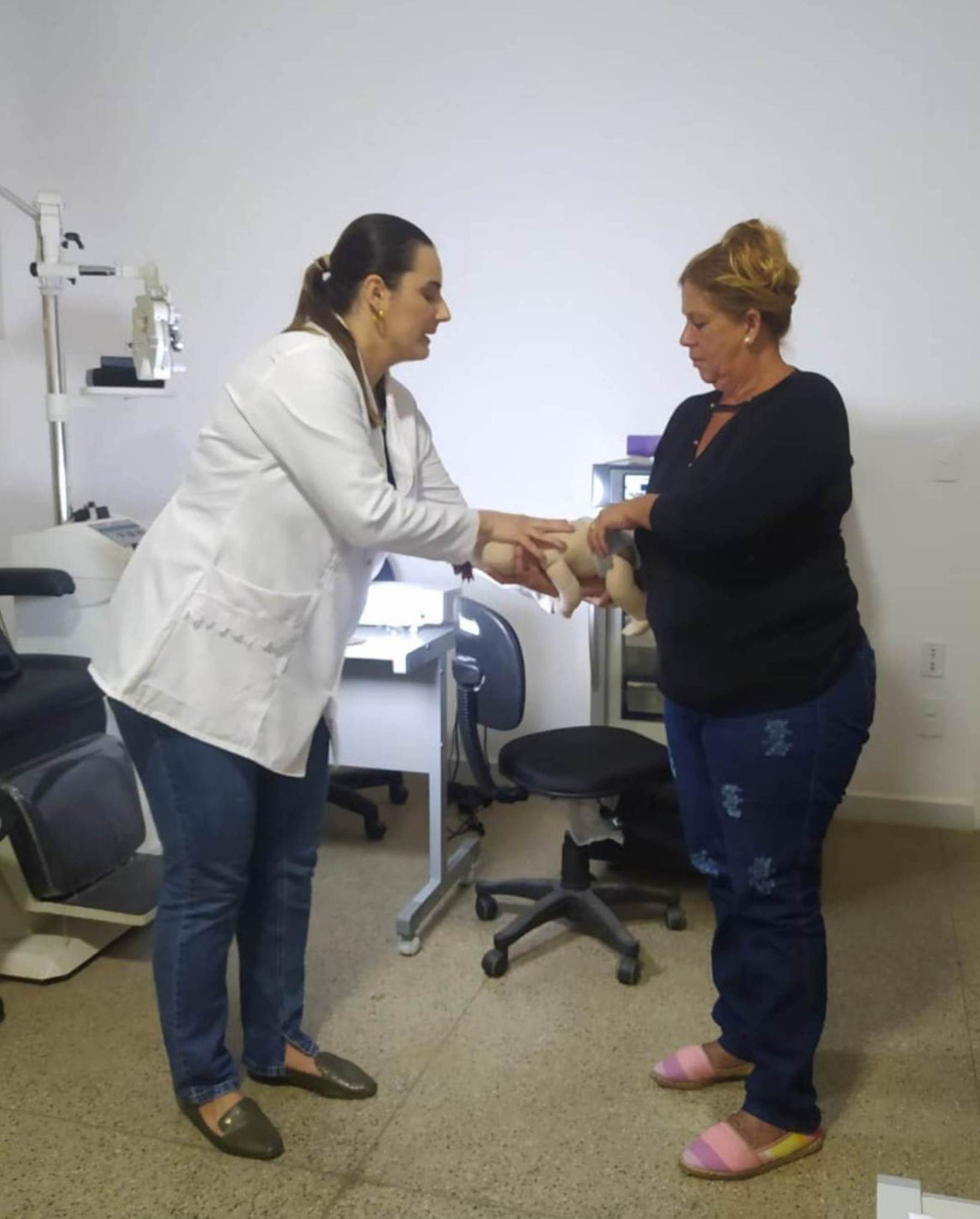 Os movimentos com uma boneca modelo simulam as intervenções necessárias caso haja a necessidade de socorrer o bebê