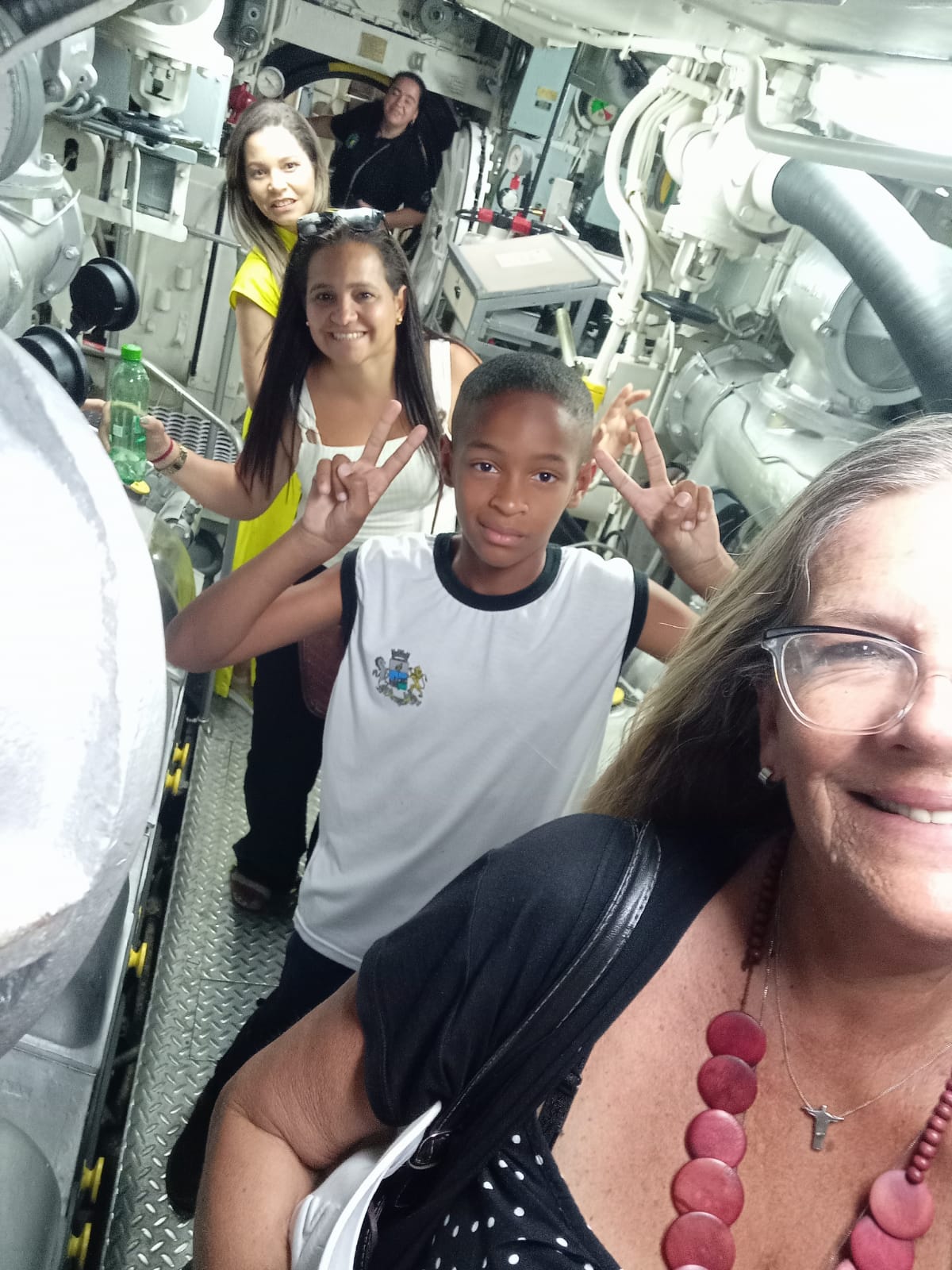 Selfie da professora mostra os visitantes num dos momentos de conhecimento no interior de uma das embarcações