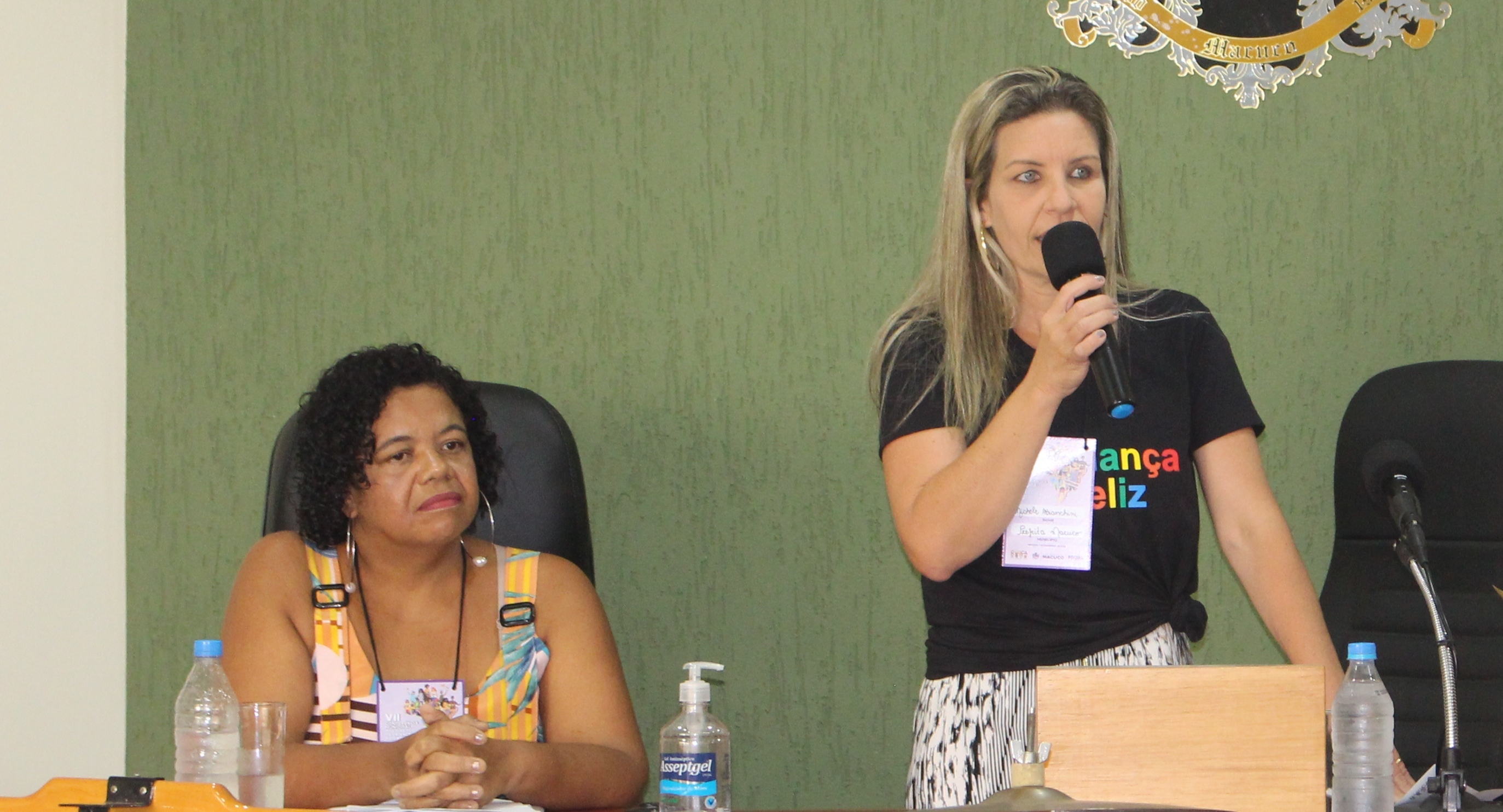 Ao lado de Leila Brito, presidente do CMDCA. Prefeita Michelle Bianchini destacou a importância da conferência