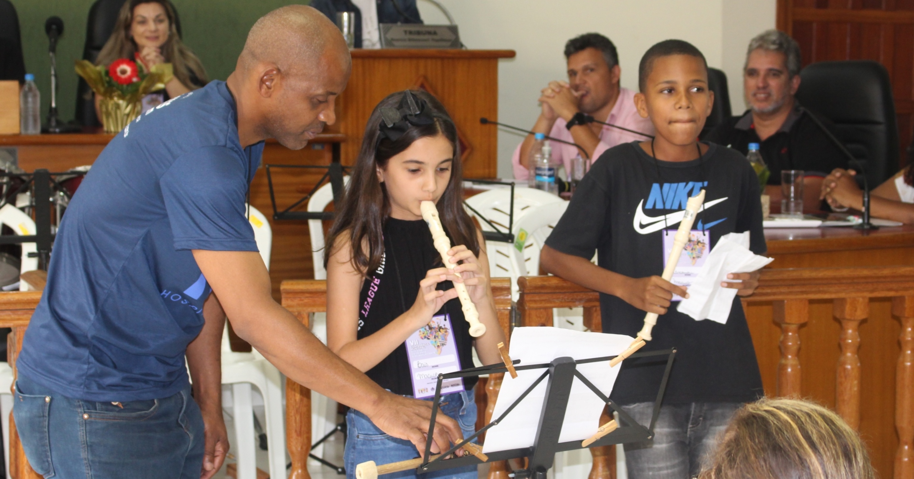 Orientadas pelo maestro Betinho, as crianças participantes do projeto de música mostraram estar no caminho certo