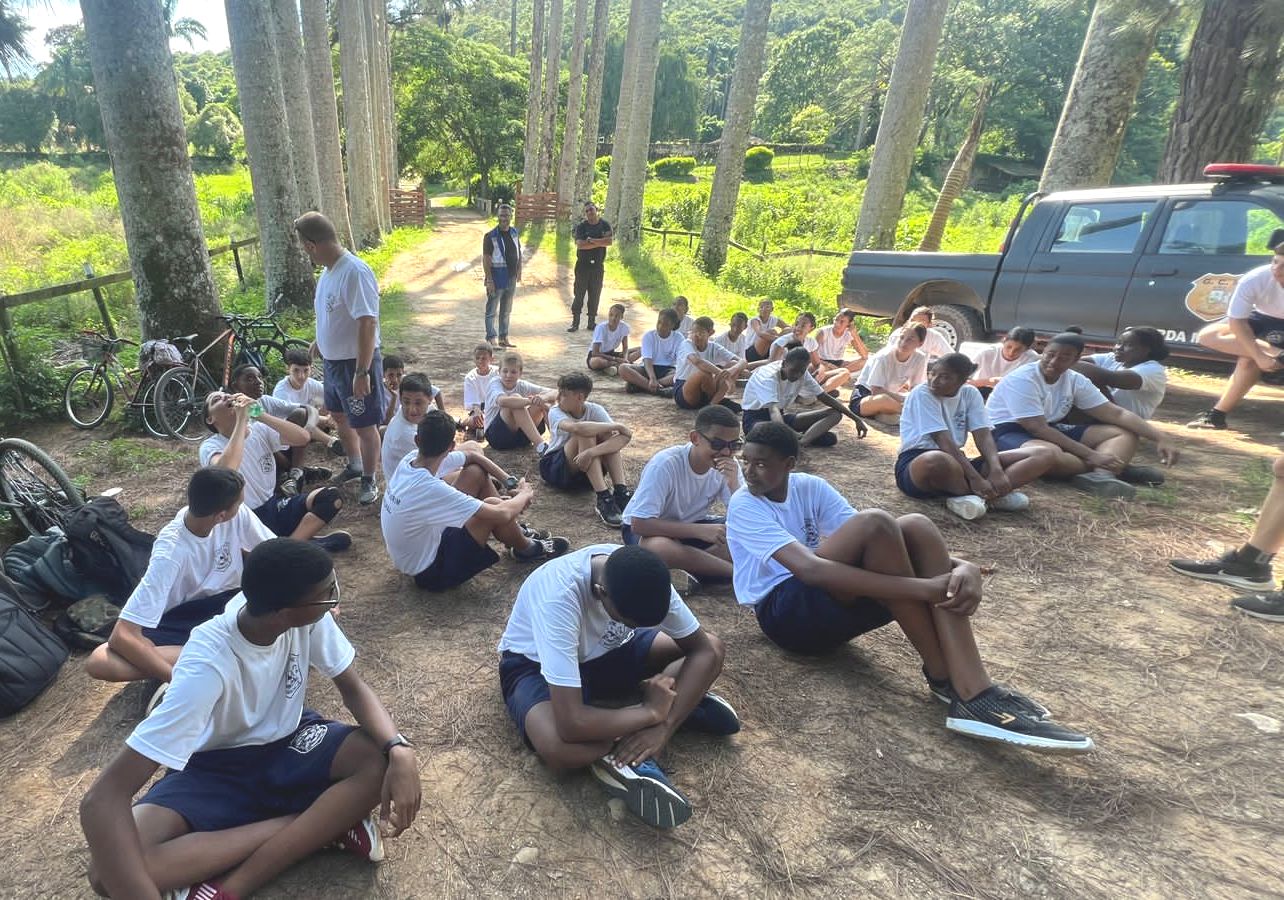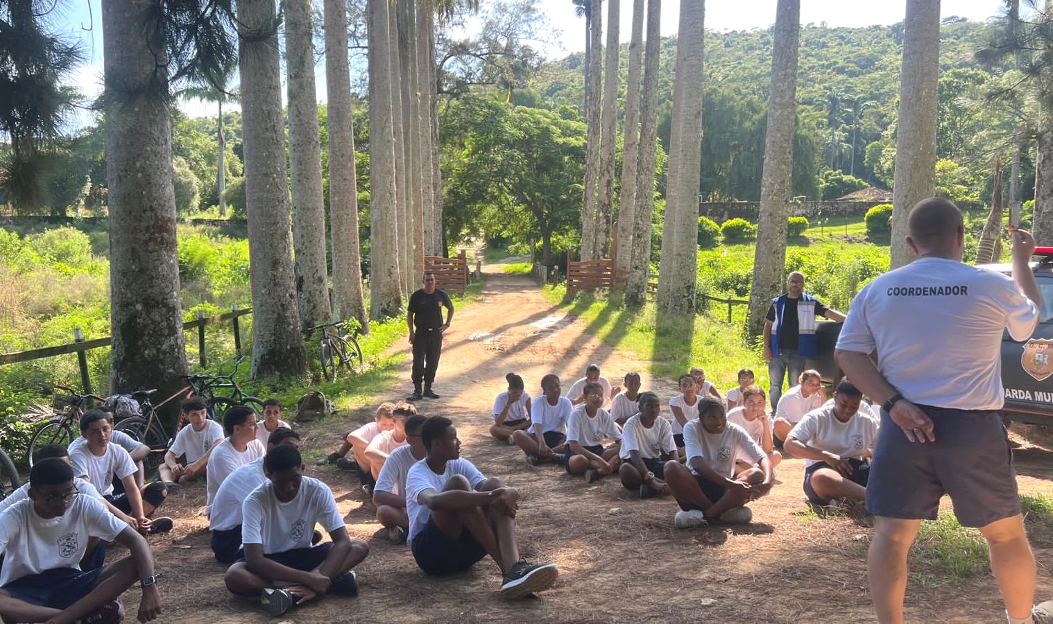 Os estudantes aproveitaram para receber informações valiosas repassadas pelo coordenador da Guarda Mirim, Raul Carapeba (de costas à direita)