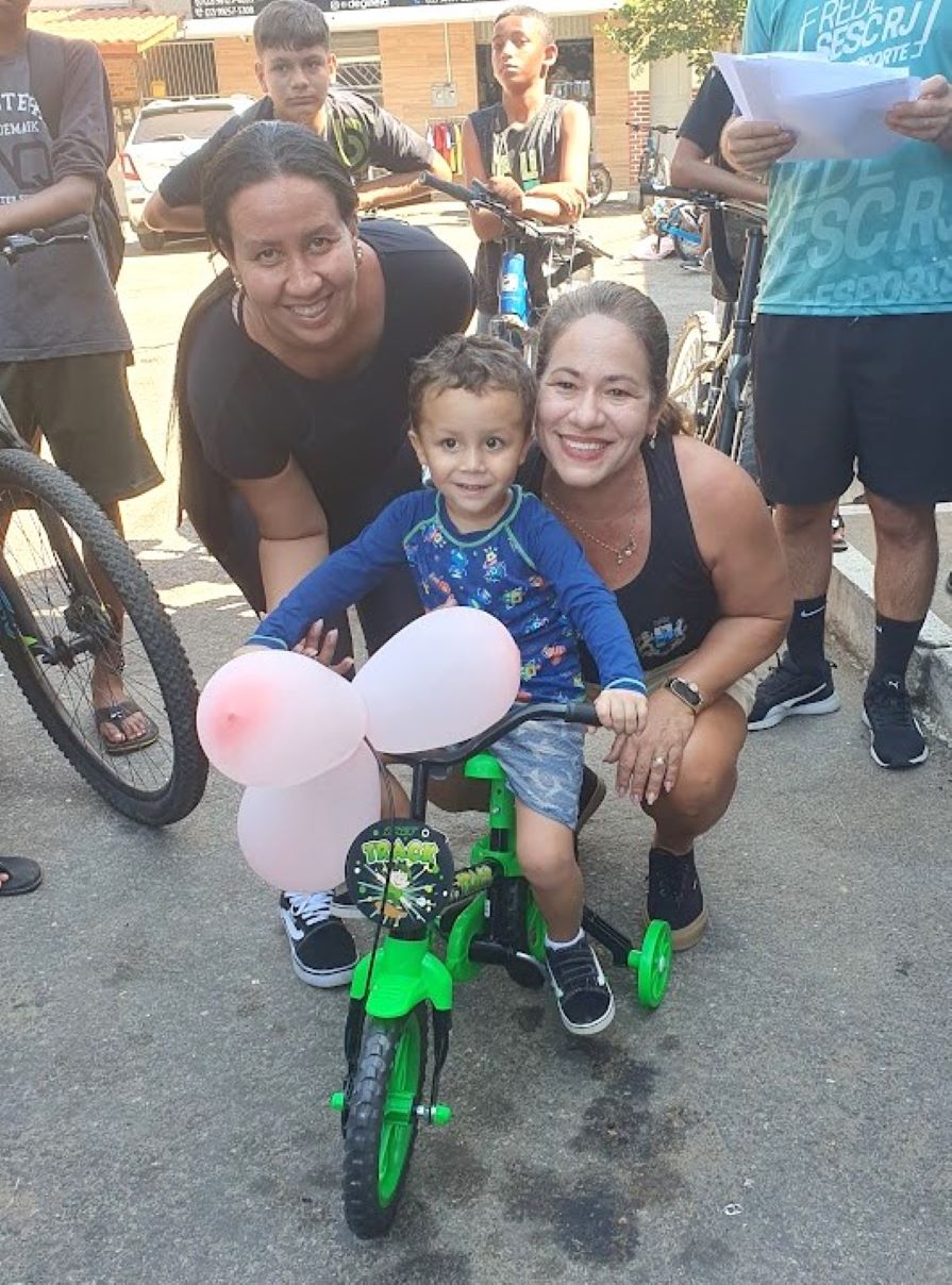 O sorriso do pequeno ciclista ao ser sorteado e ganhar uma nova bicicleta para trilhar os caminhos do esporte