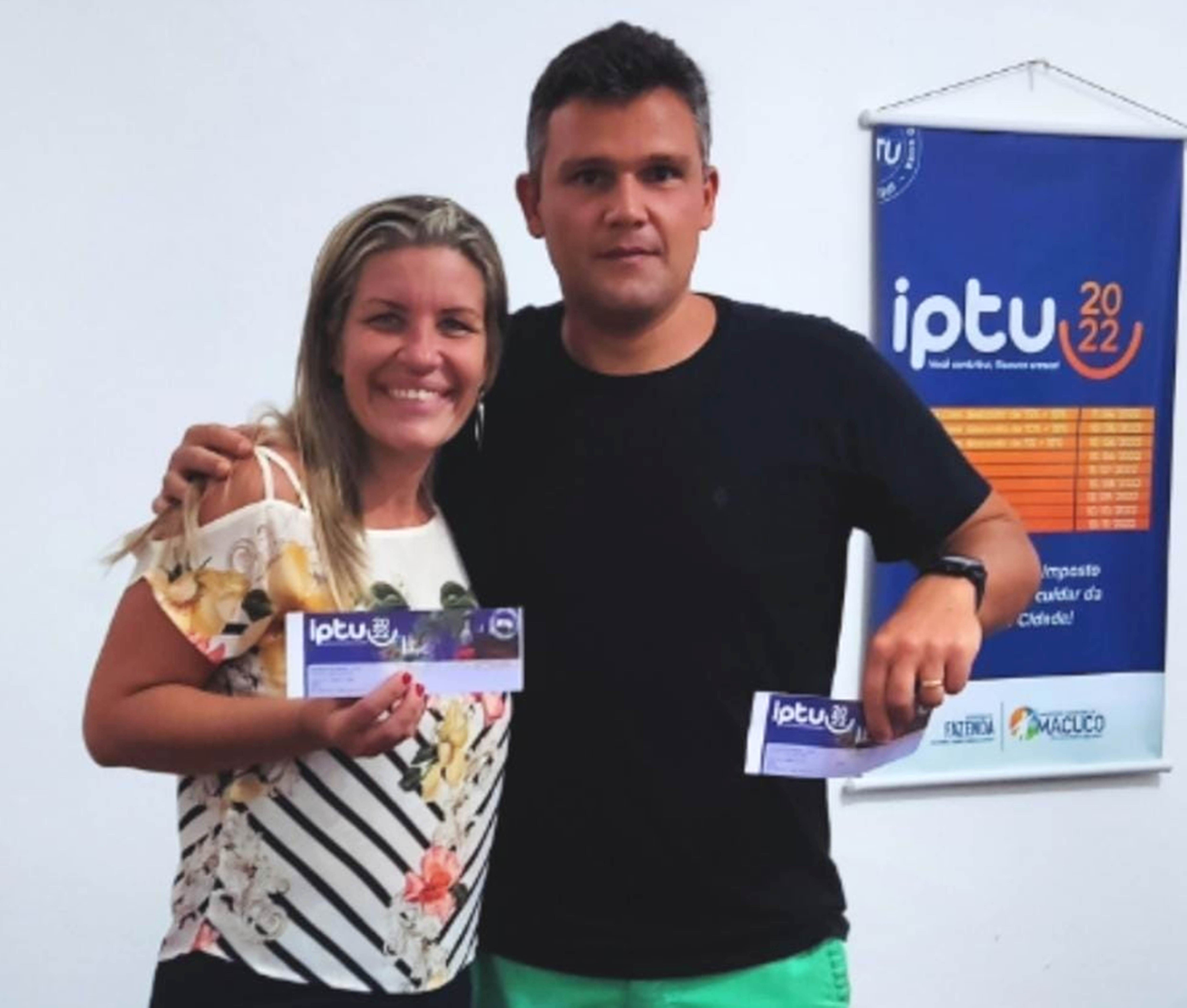 Ao lado do marido, a prefeita de Macuco visitou a equipe da Secretaria de Fazenda responsável pelo IPTU