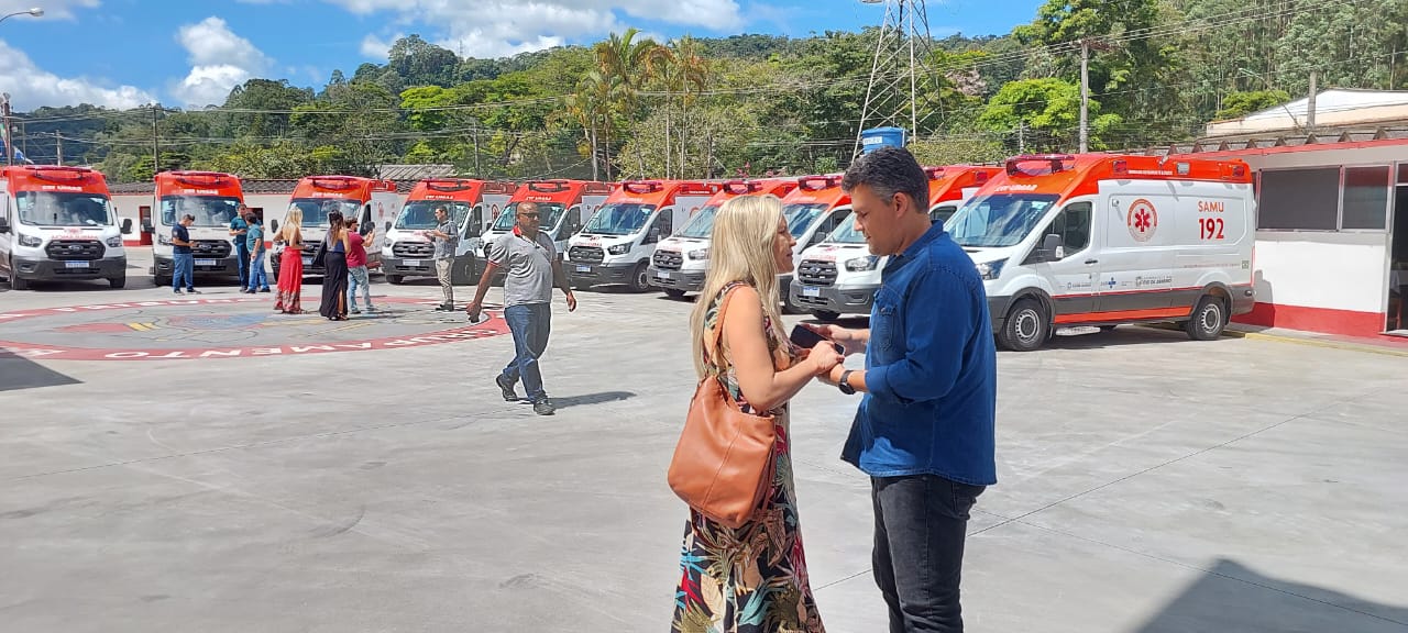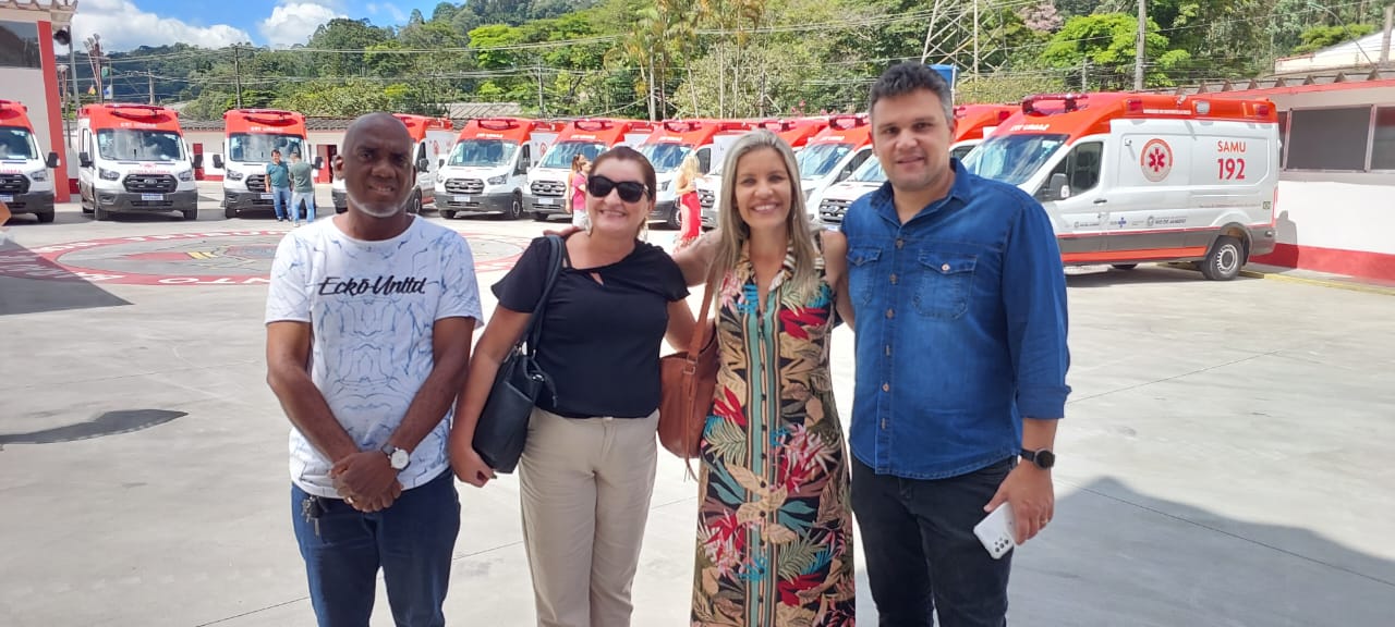 A prefeita Michelle Bianchini acompanhada do secretário Geral de Governo João Vitor Pontes e da Secretária Municipal de Saúde Ana Paula Gonçalves, recebeu das mãos do Governo do Estado do Rio de Janeiro, na cidade de Nova Friburgo, uma nova ambulância para a municipalidade.