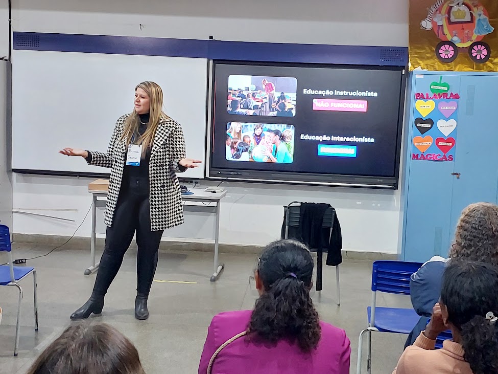 Com uma abordagem sensível e interativa, a palestrante conseguiu transformar o espaço destinado ao encontro em um espaço de acolhimento e aprendizado mútuo. Utilizando dinâmicas de grupo, falas empáticas e exemplos do cotidiano escolar, Bruna despertou nos participantes a consciência sobre a importância de reconhecer suas emoções, validar seus sentimentos e construir estratégias para lidar com os desafios que ultrapassam a sala de aula. A proposta foi promover o autoconhecimento e oferecer caminhos para que os educadores possam cuidar de si, mantendo a qualidade do ensino e o equilíbrio nas relações interpessoais.