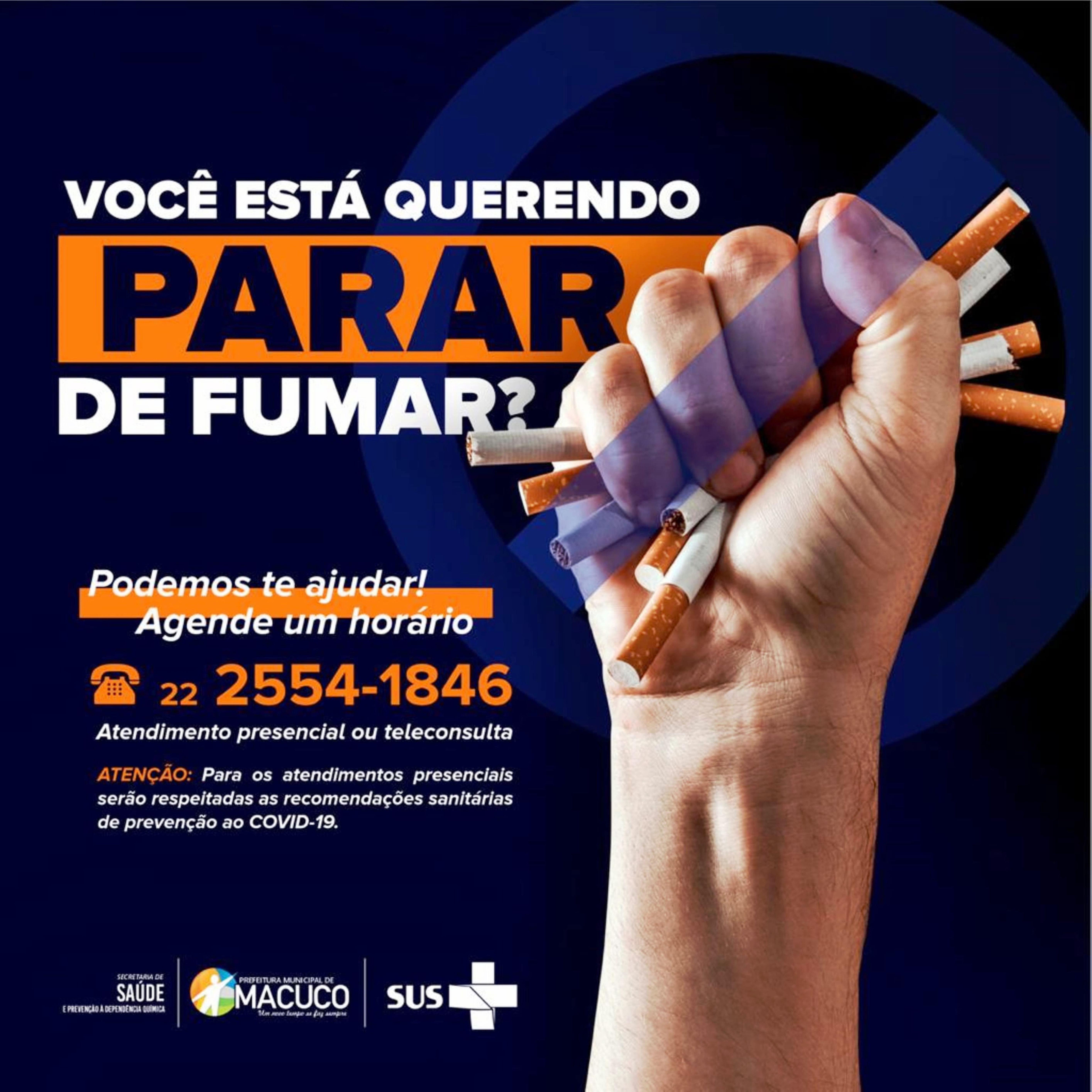Em Macuco, a Coordenação Programa de Controle do Tabagismo, integrada à Secretaria de Saúde, desenvolve abrangente trabalho de prevenção ao tabagismo, com ações contundentes para quem deseja parar de fumar. As orientações são idealizadas por uma terapeuta ocupacional e quem precisa de auxílio e atendimento pode fazer contato pelo telefone fixo (22) 2554-1846.