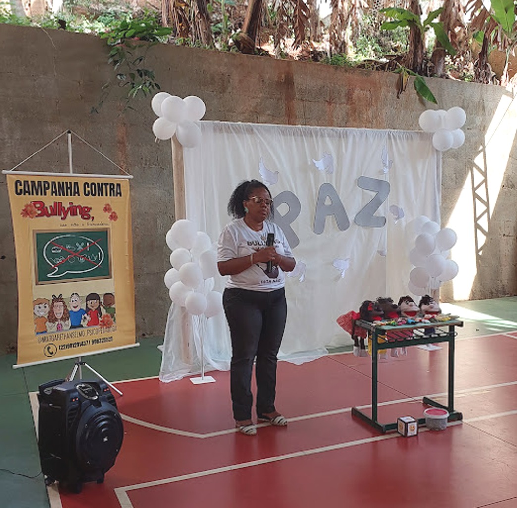 Para dar continuidade ao chamado de engajamento junto à população e permanecer alertando a sociedade sobre temas prementes que defendam atitudes humanitárias e sadias no ambiente educacional, a Escola Municipal Professora Sylvia Bath Rosas teve momentos de aprendizado e reflexão nesta terça-feira, dia 18 de abril, quando a psicopedagoga Margareth Anselmo promoveu uma esclarecedora palestra. Ela tratou da paz em variadas vertentes e trouxe à tona causas e efeitos do bulling, algo considerado tão maléfico atualmente em todo país.