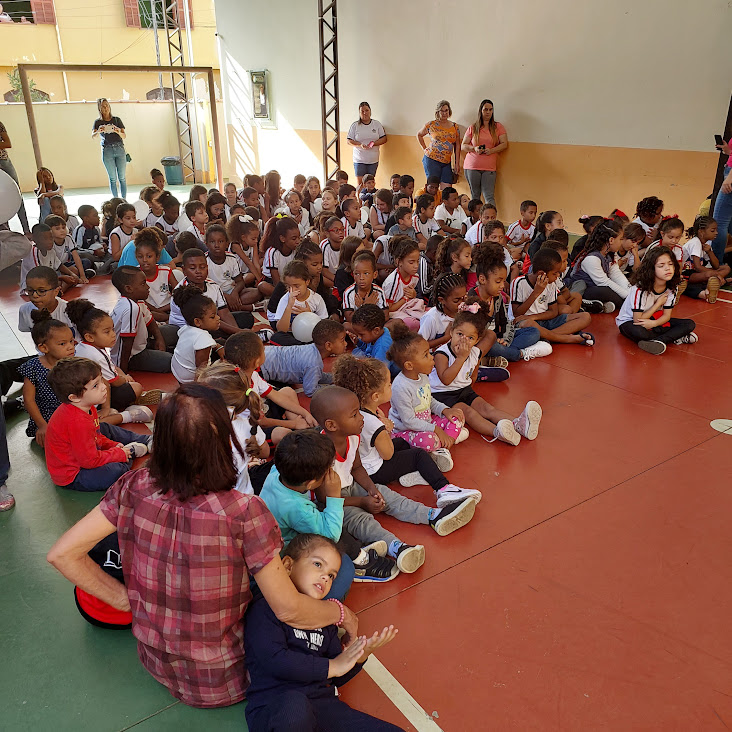 A criançada parou para prestar a atenção nos ensinamentos da convidada numa palestra bastante emocionante