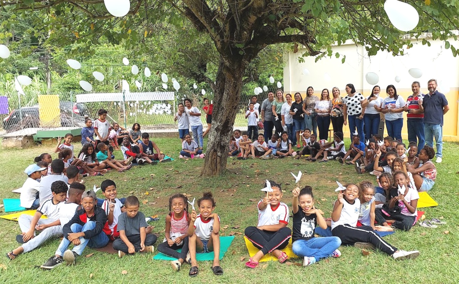 Embaixo da ‘árvore da paz’ do CIEP, comunidade escolar e convidados conversaram sobre os temas paz, amizade e companheirismo
