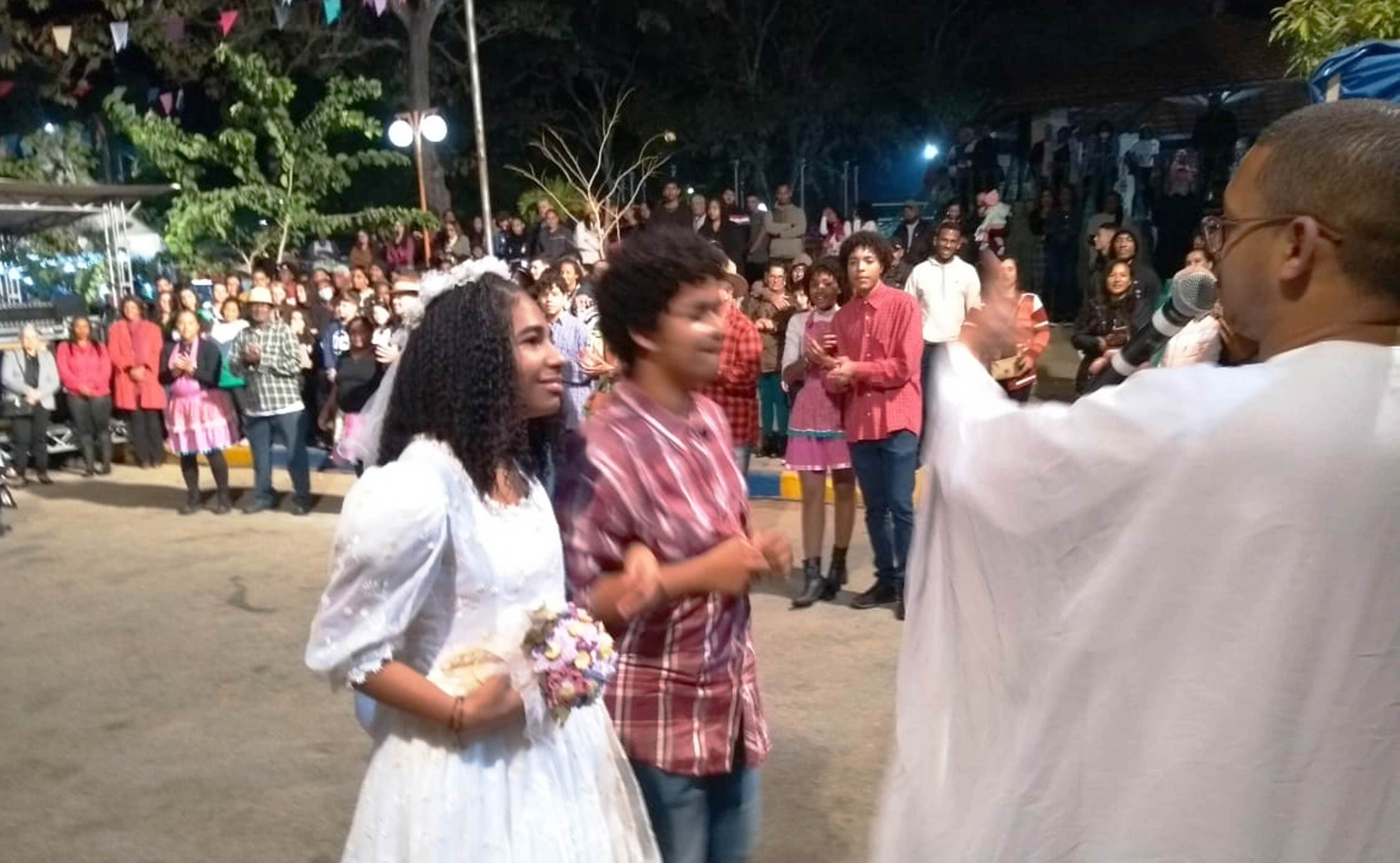 Não poderia faltar o tradicional casamento caipira comandado pelo padre e testemunhado pelos expectadores