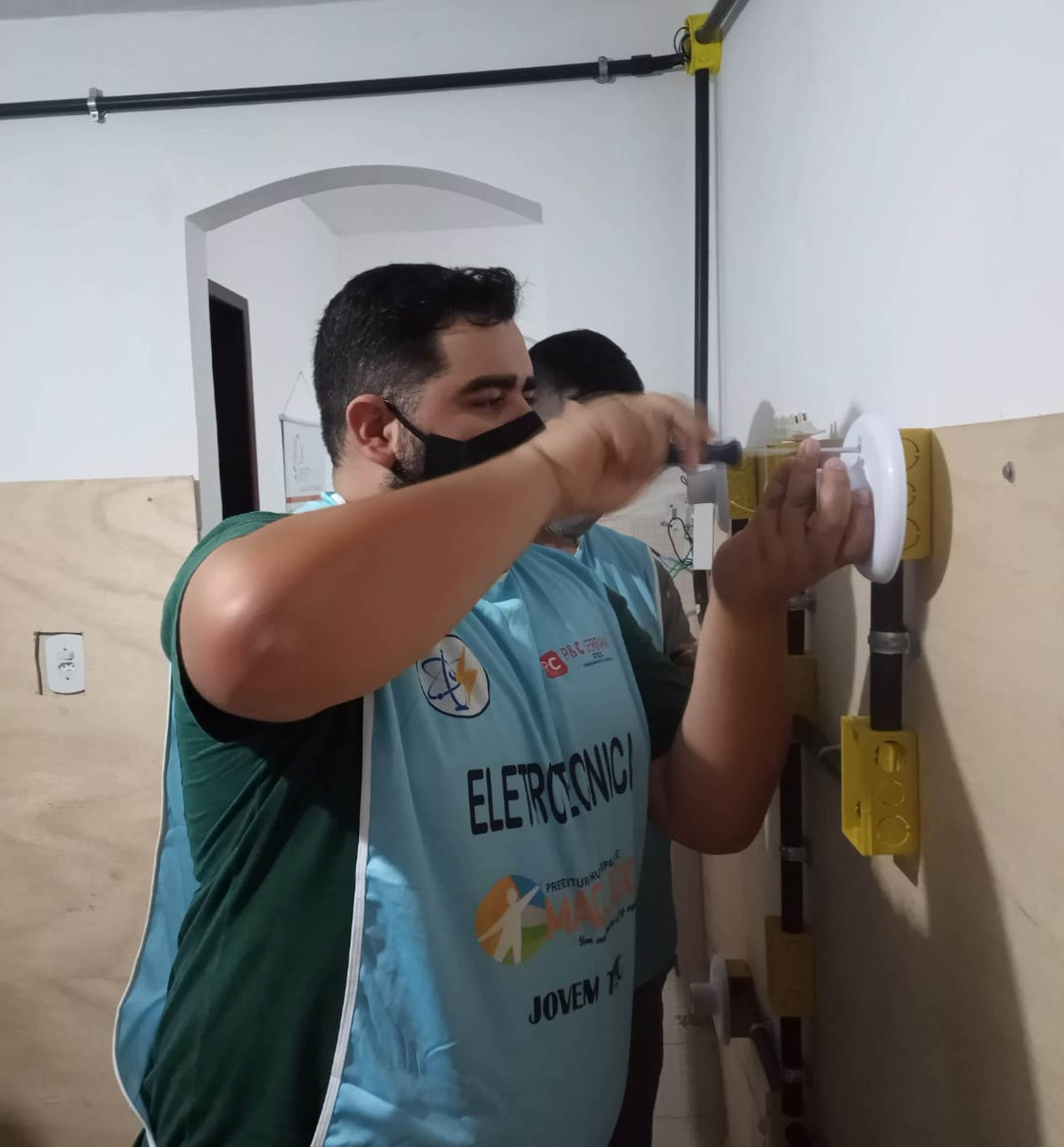 Aula prática da disciplina Instalação Elétrica Residencial é apenas uma das tantas experiências vividas pelos cursistas que escolheram o segmento