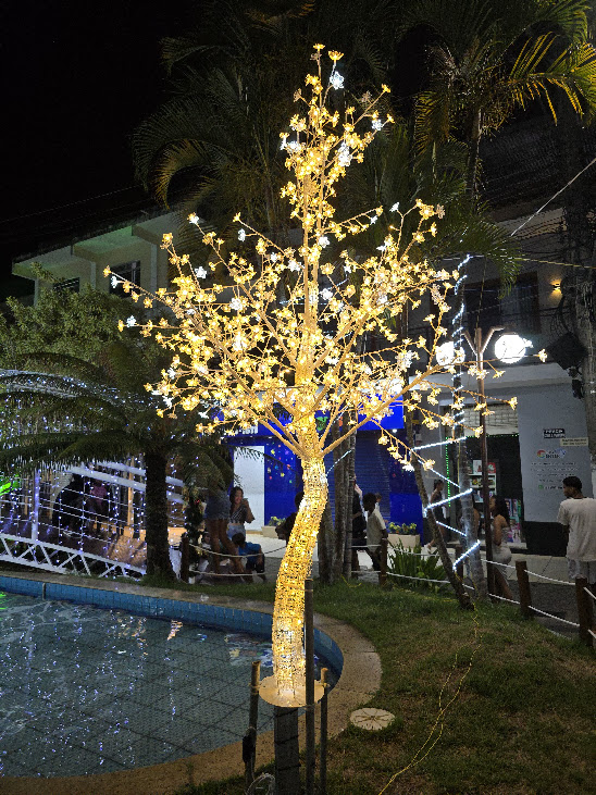 O capricho da Gestão Municipal com a decoração natalina foi tamanho, que a árvore parece realmente estar salpicada de neve, num efeito visual belíssimo