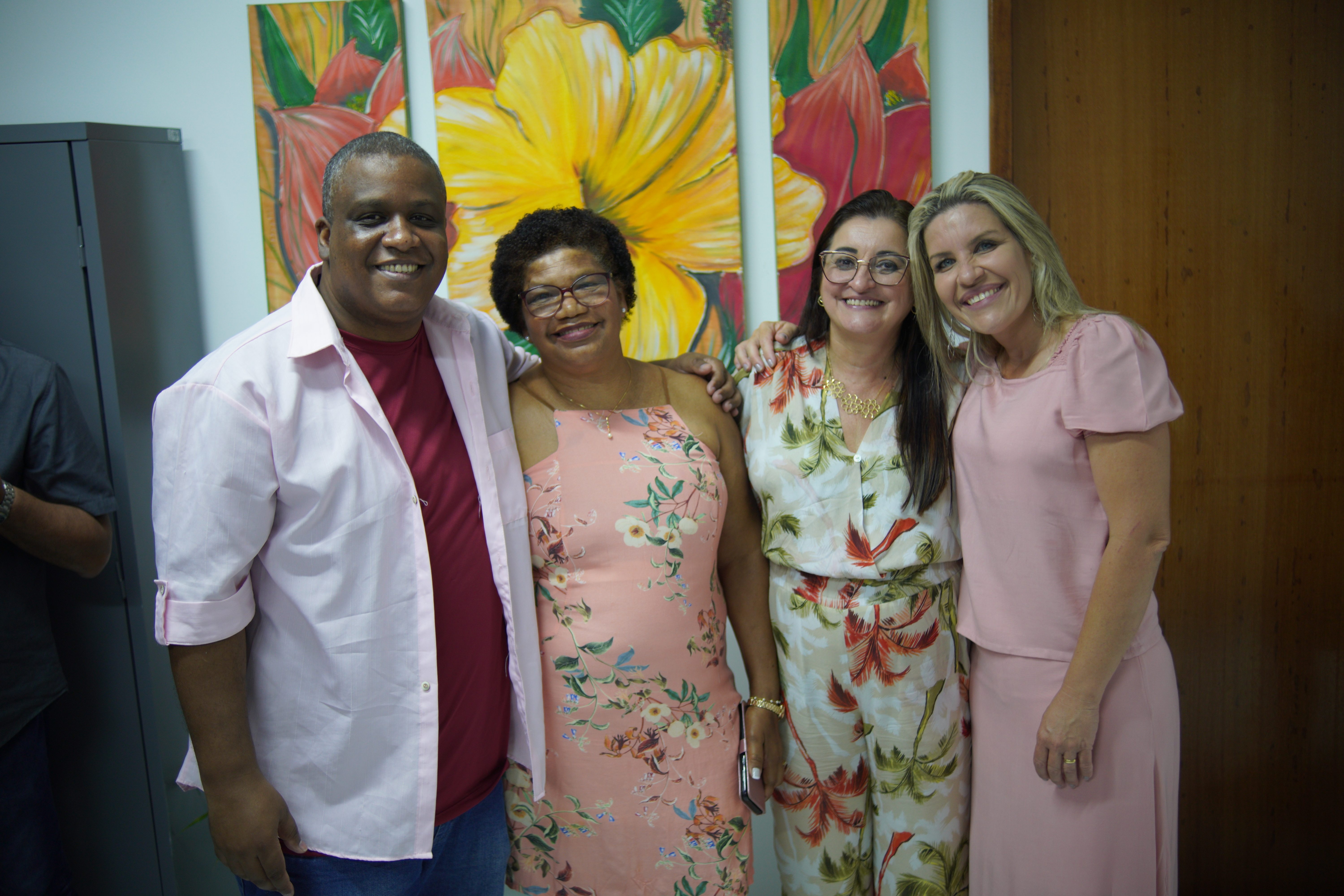 Profissionais de saúde que irão atuar no Núcleo de Vigilância em Saúde Maria Cardozo da Silva se confraternizam com prefeita e secretário de Governo