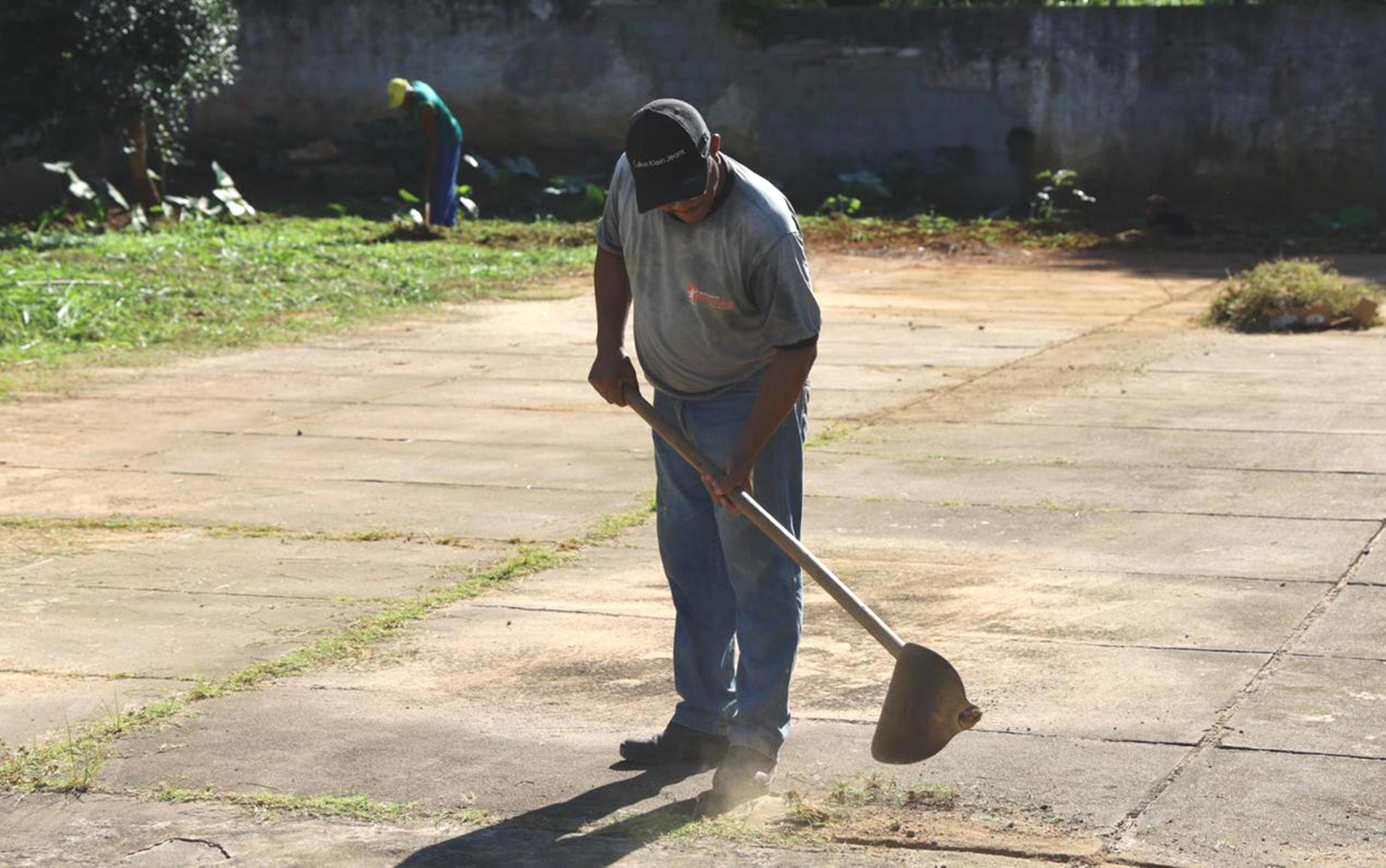 Serviços de manutenção incluíram a capina para deixar o pátio do educandário com novo visual