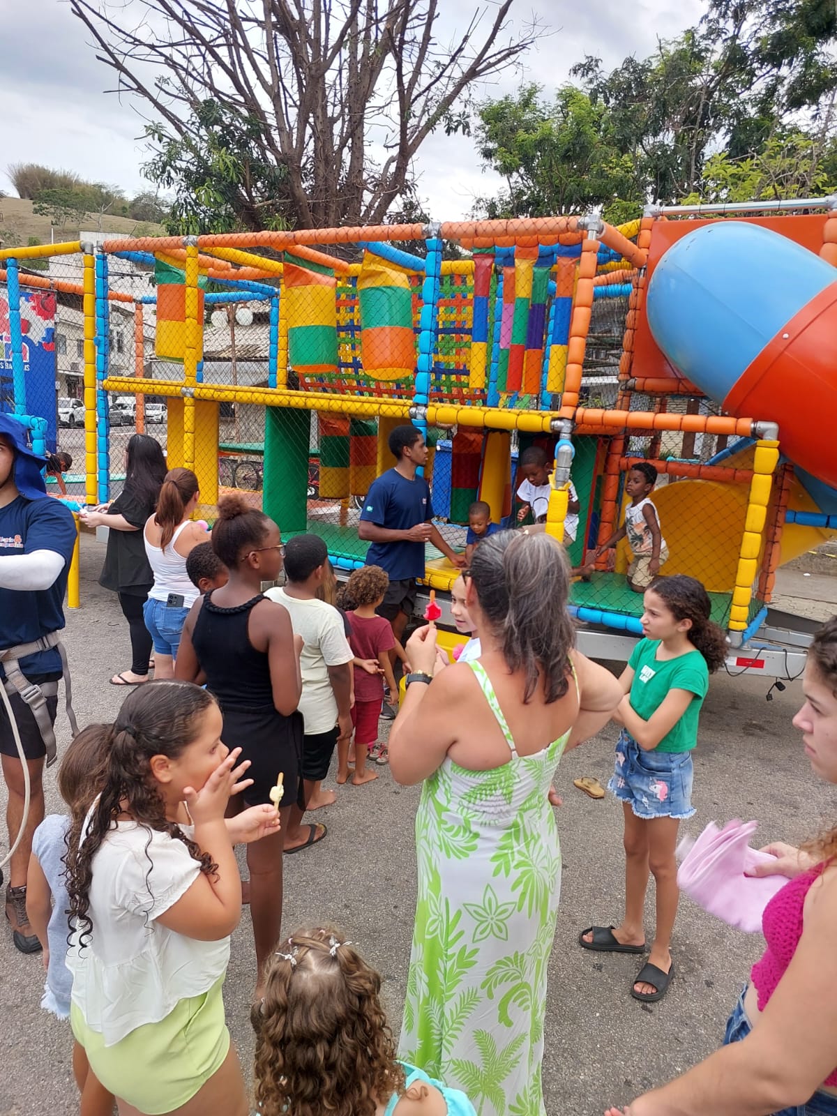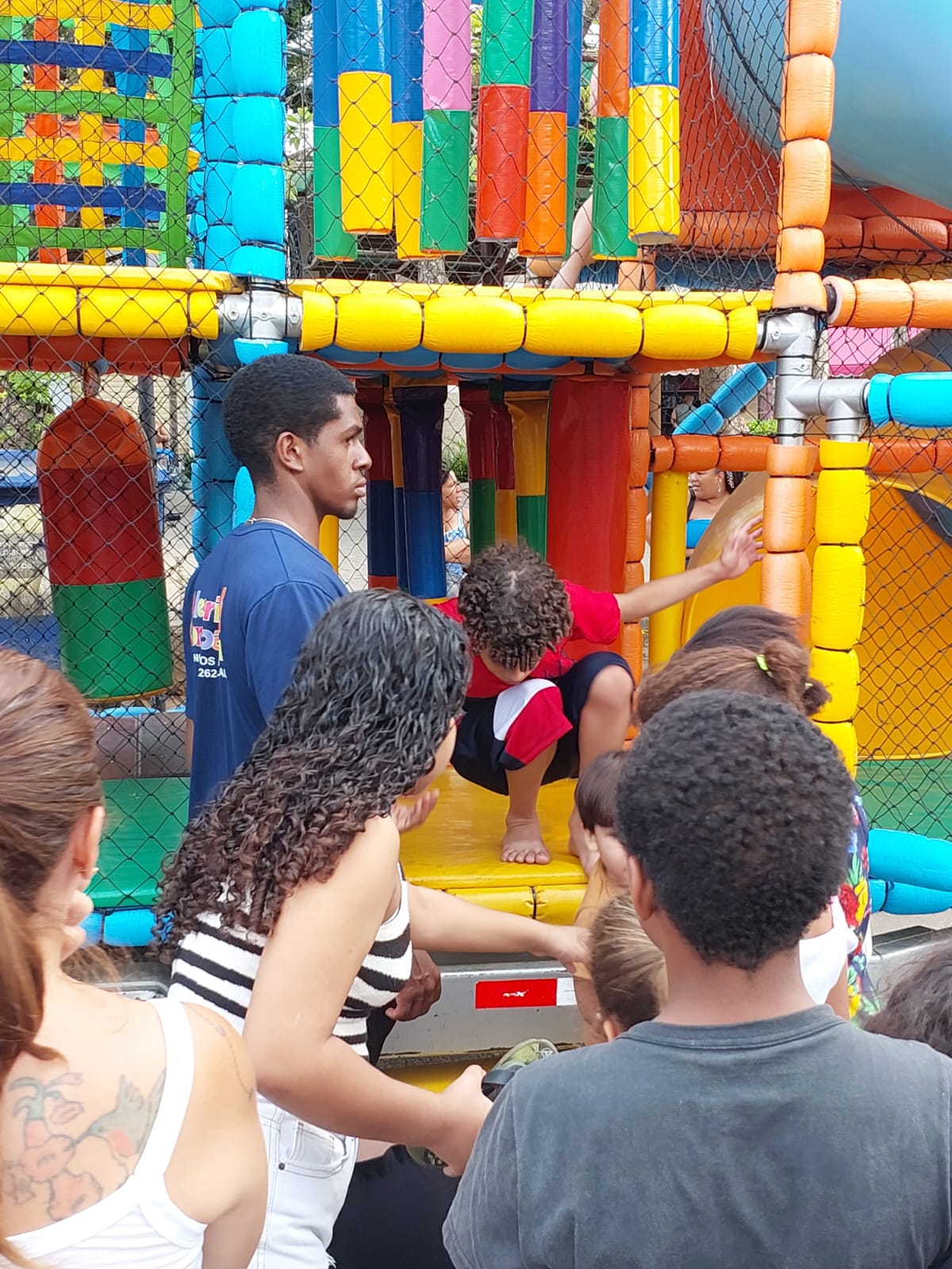 As crianças se divertiram em total segurança, já que em cada brinquedo havia um adulto supervisionando tudo