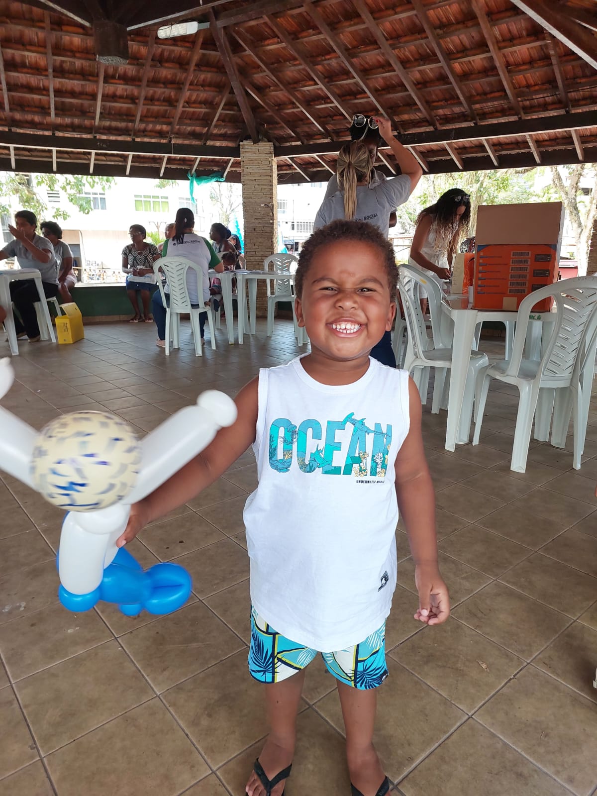 Impossível não se deixar contagiar com esse sorrisinho lindo do garotão, mostrando que a felicidade estava presente ao ganhar uma belíssima arte em seu balão