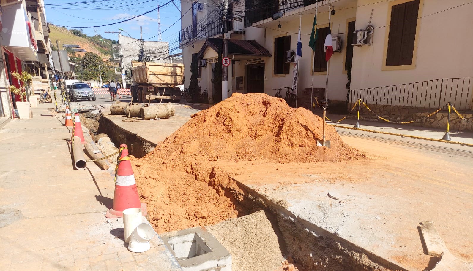 Em alguns trechos próximos da Prefeitura de Macuco as manilhas já foram trocadas e o piso já está sendo refeito