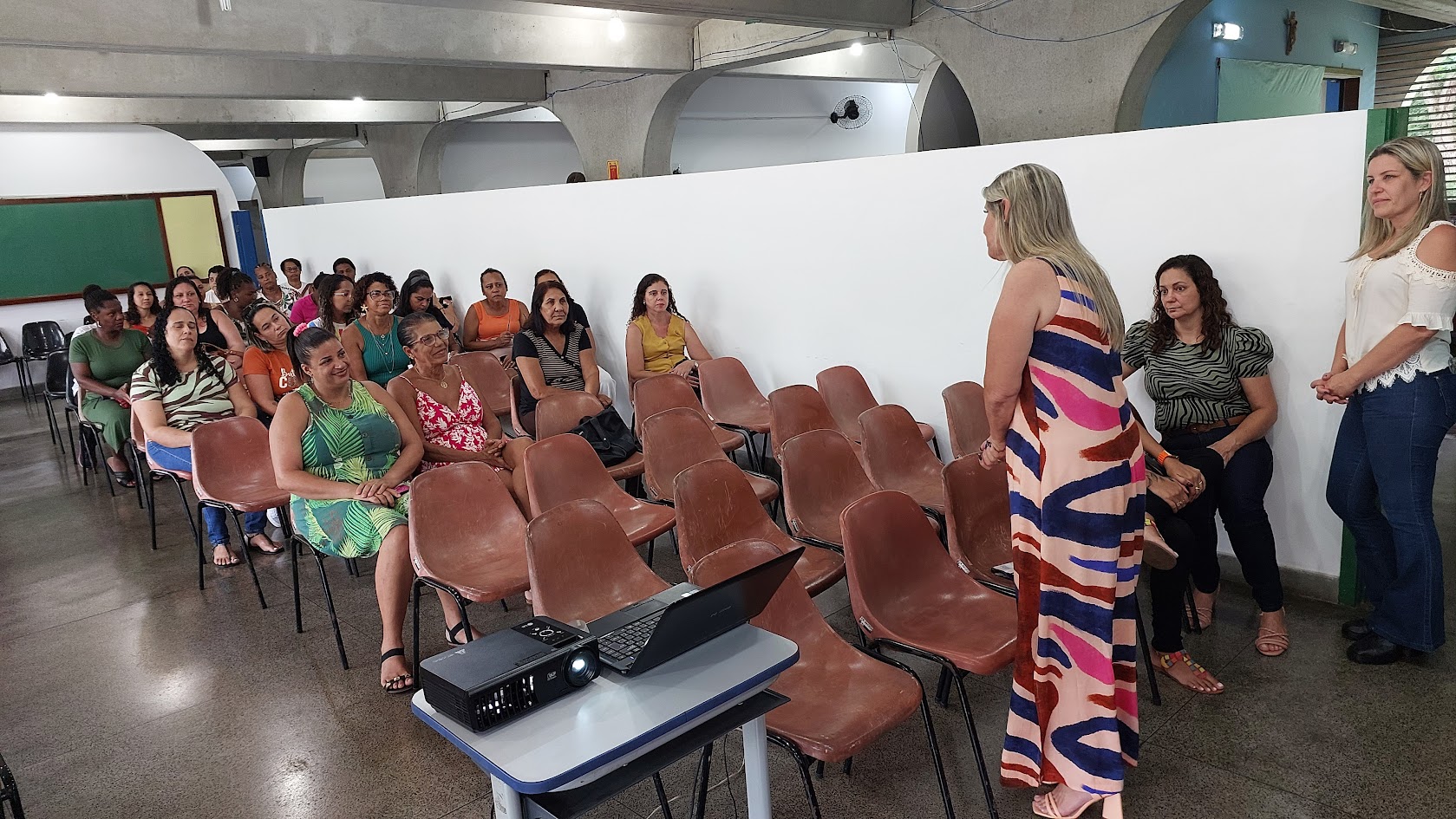 Num gesto de acolhimento, juntamente com a prefeita, a secretária de Educação deu as boas-vindas às equipes de apoio dos educandários