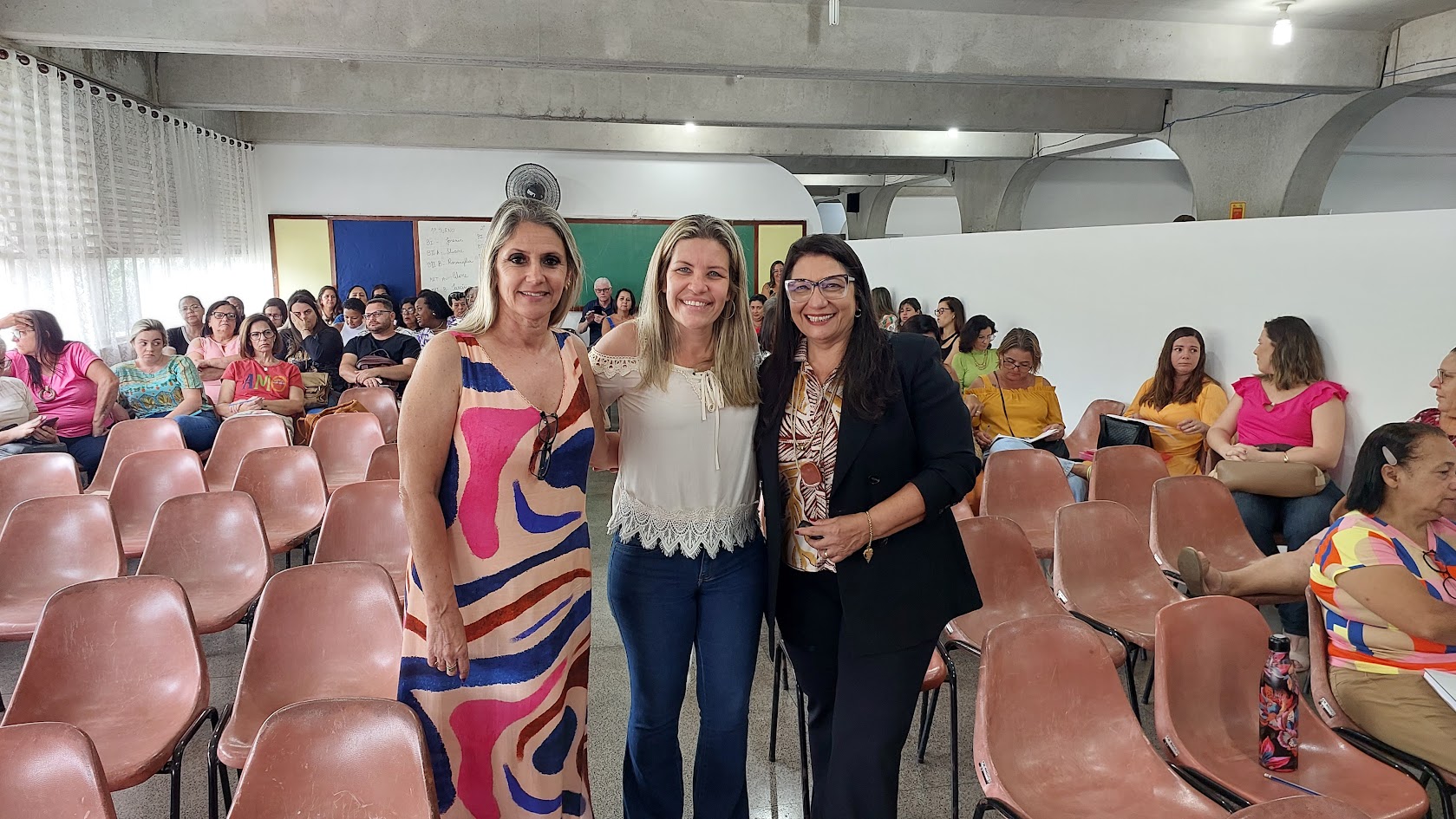 Prefeita Michele Bianchini entre a palestrante Cláudia Mourão e a secretária de Educação de Macuco, professora Cláudia Vogas