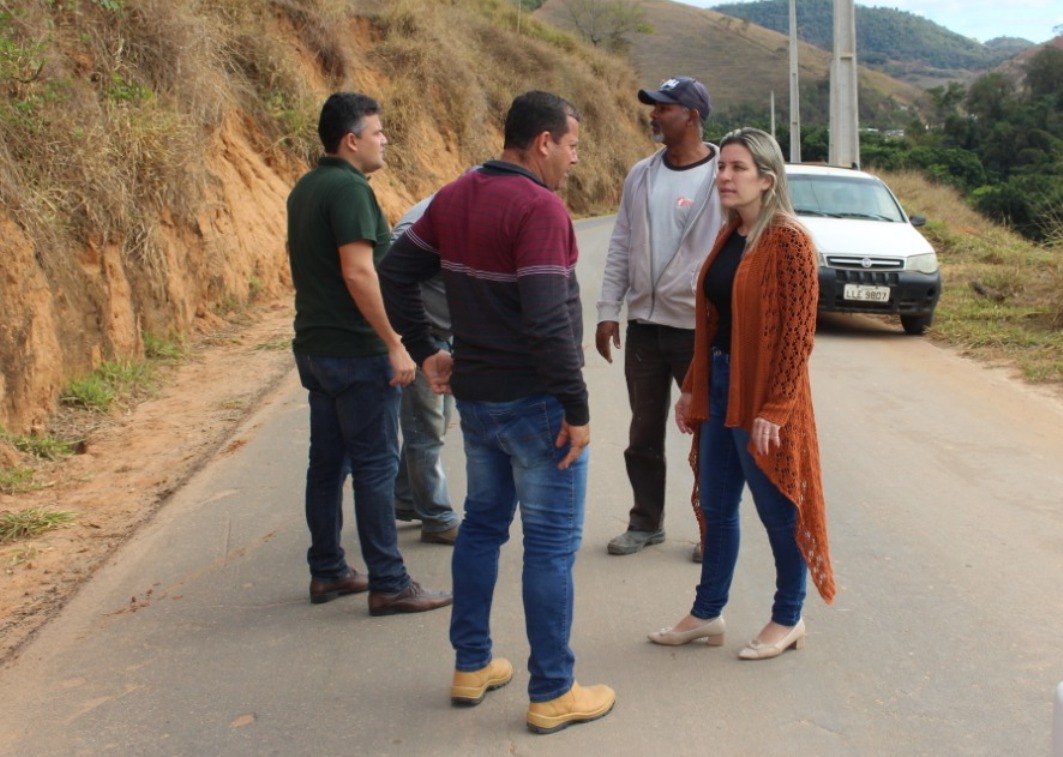 Prefeita, secretários e equipe especializada conversam durante a realização dos serviços na via