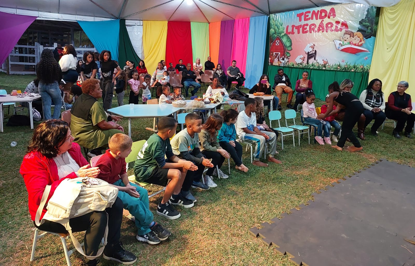Se ver crianças felizes aquece o coração dos adultos, a Tenda Literária foi a condutora dessas emoções infantis na Expo-Macuco