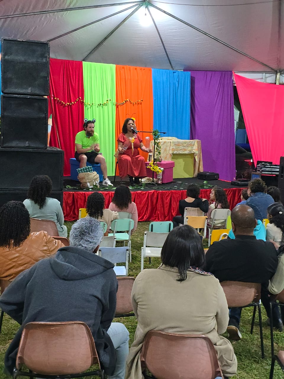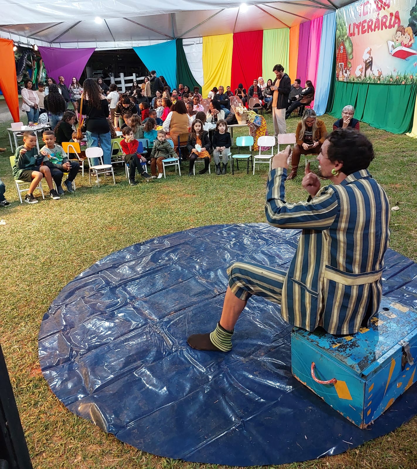 Mais uma das inúmeras histórias contadas com riqueza de detalhes na Tenda Literária e sempre com a criatividade dos artistas