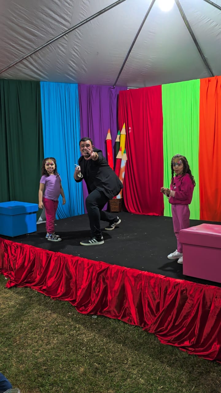 Alegria e muita participação infantil marcaram as apresentações, especialmente a do Mágico Gabriel