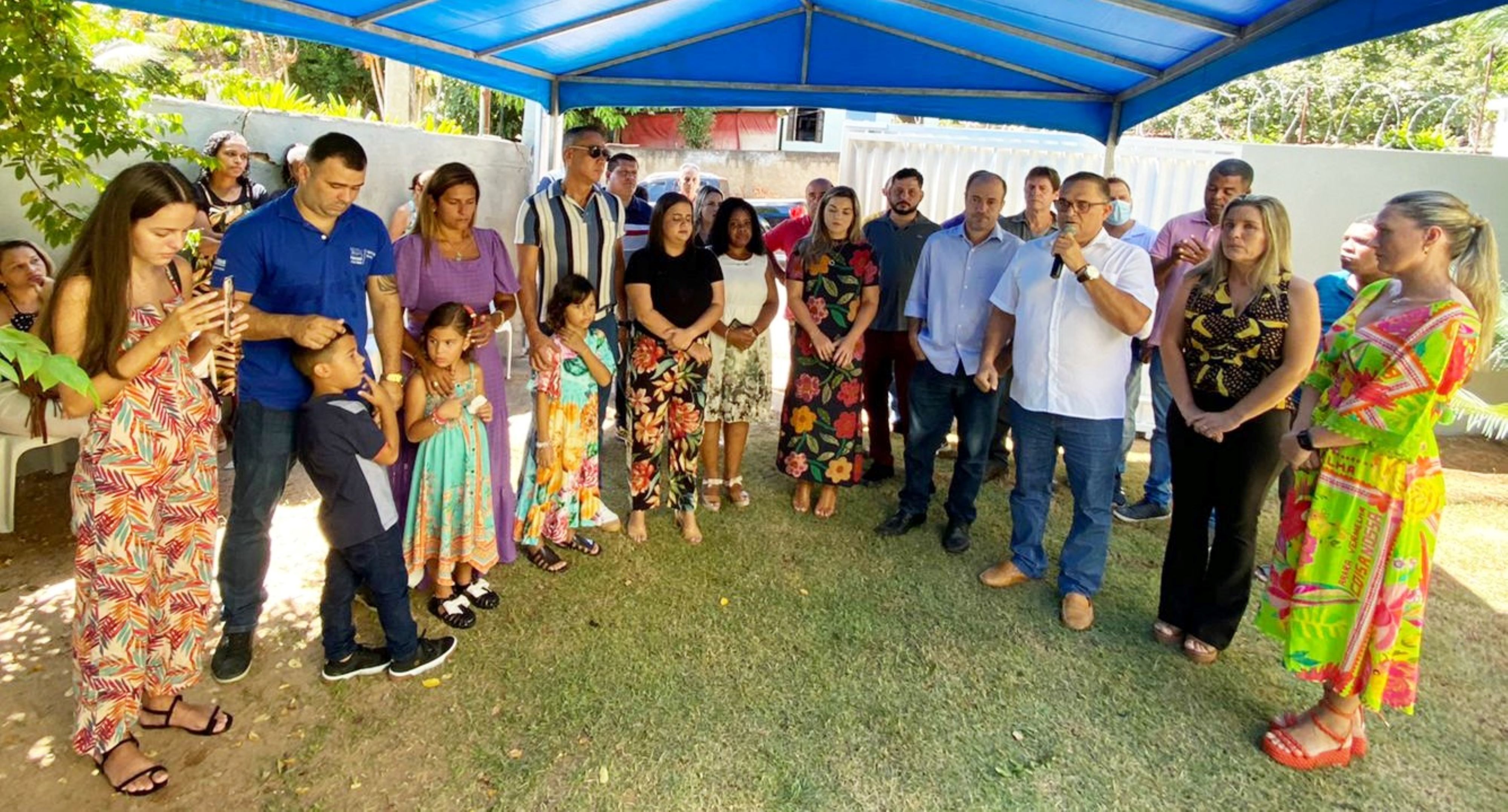 Prefeito, vice e secretária de Desenvolvimento Social homenagearam integrantes da família de Rosângela durante a inauguração